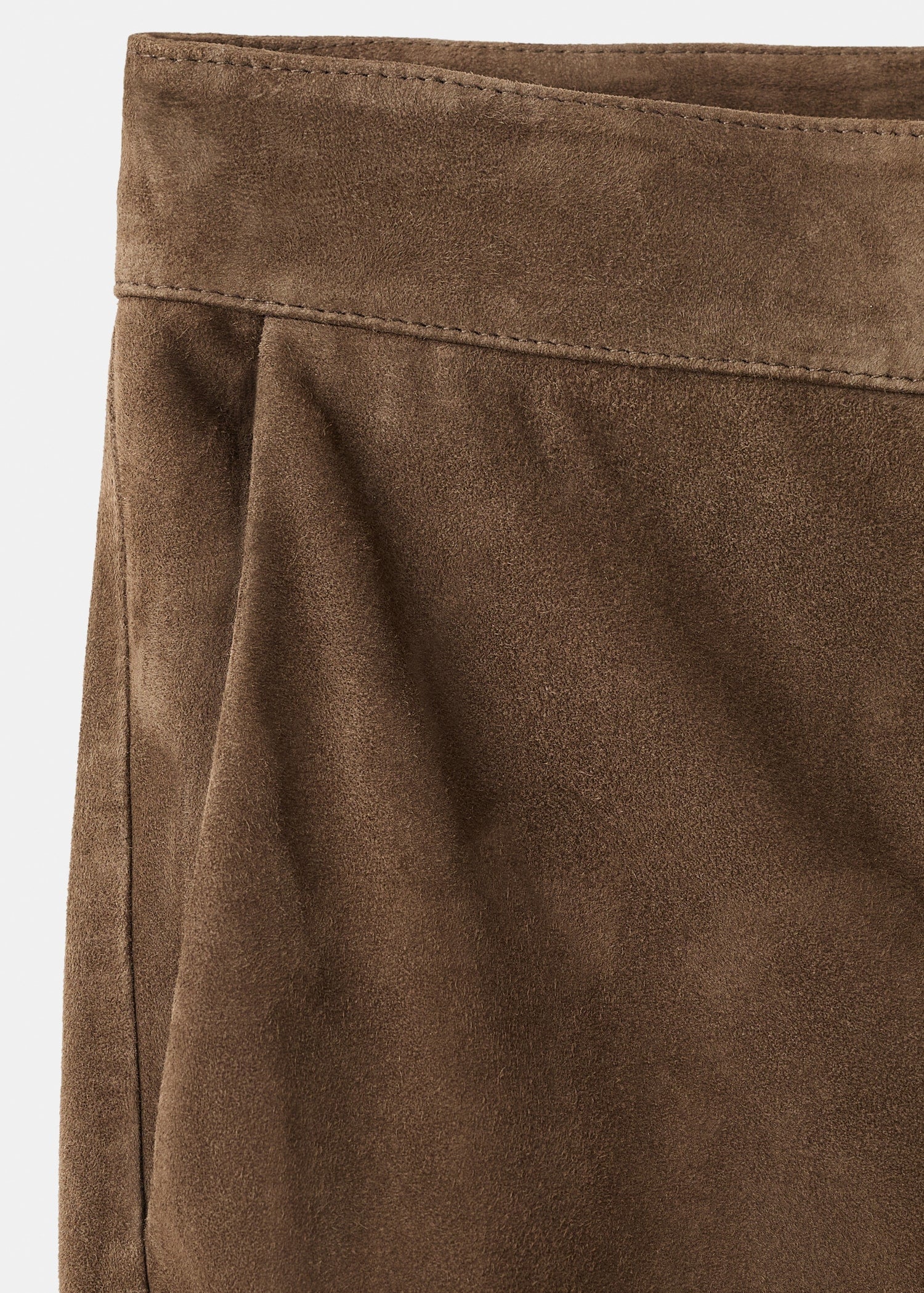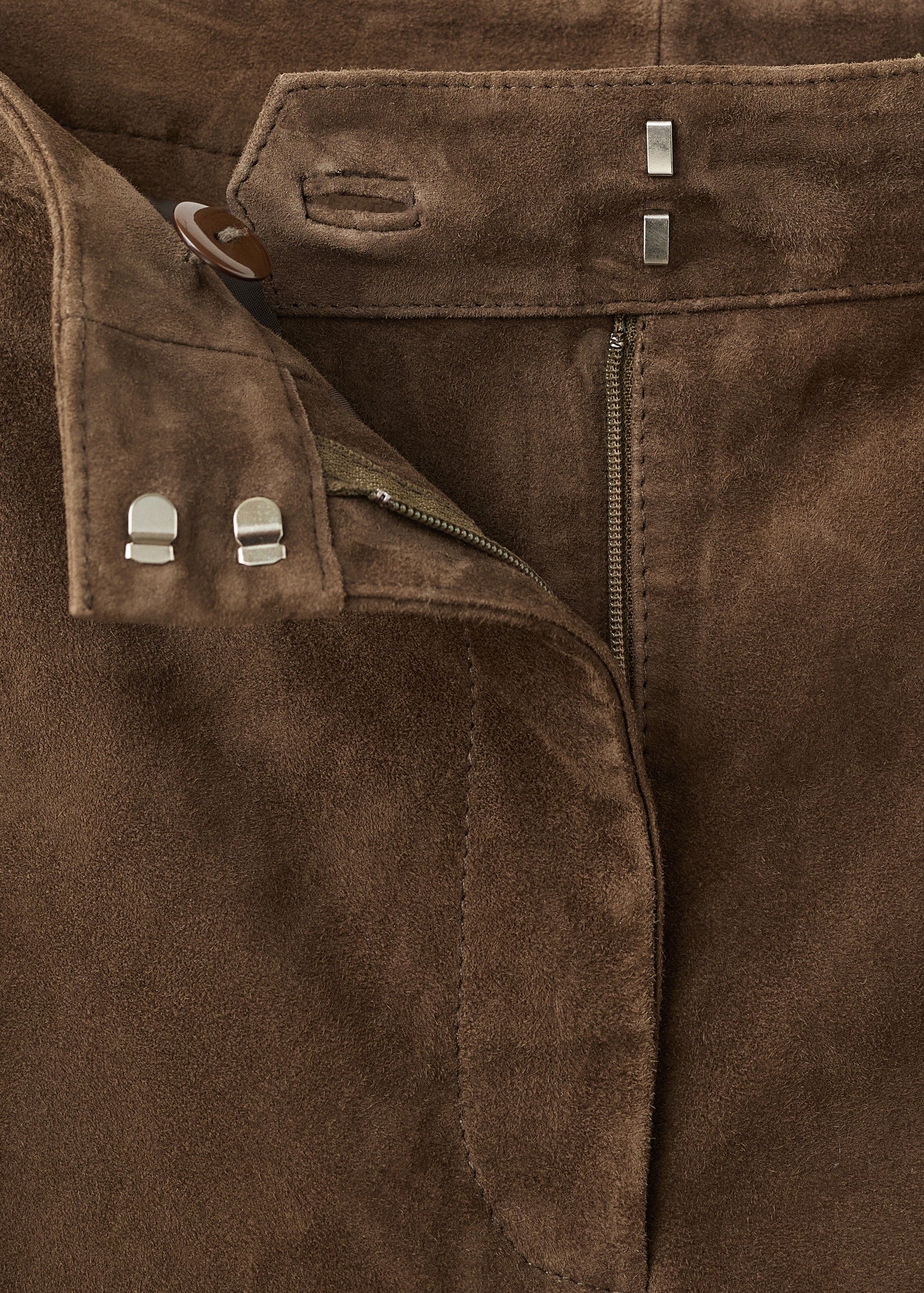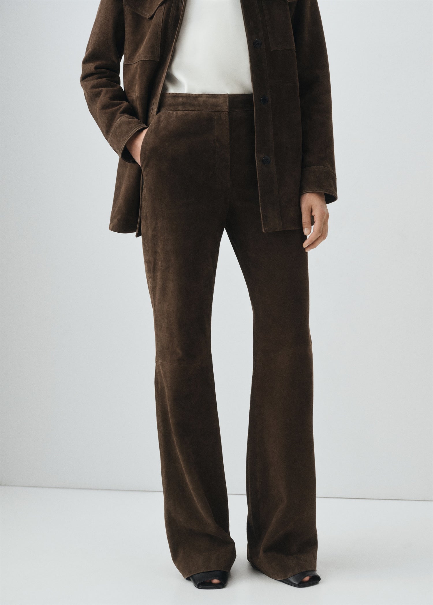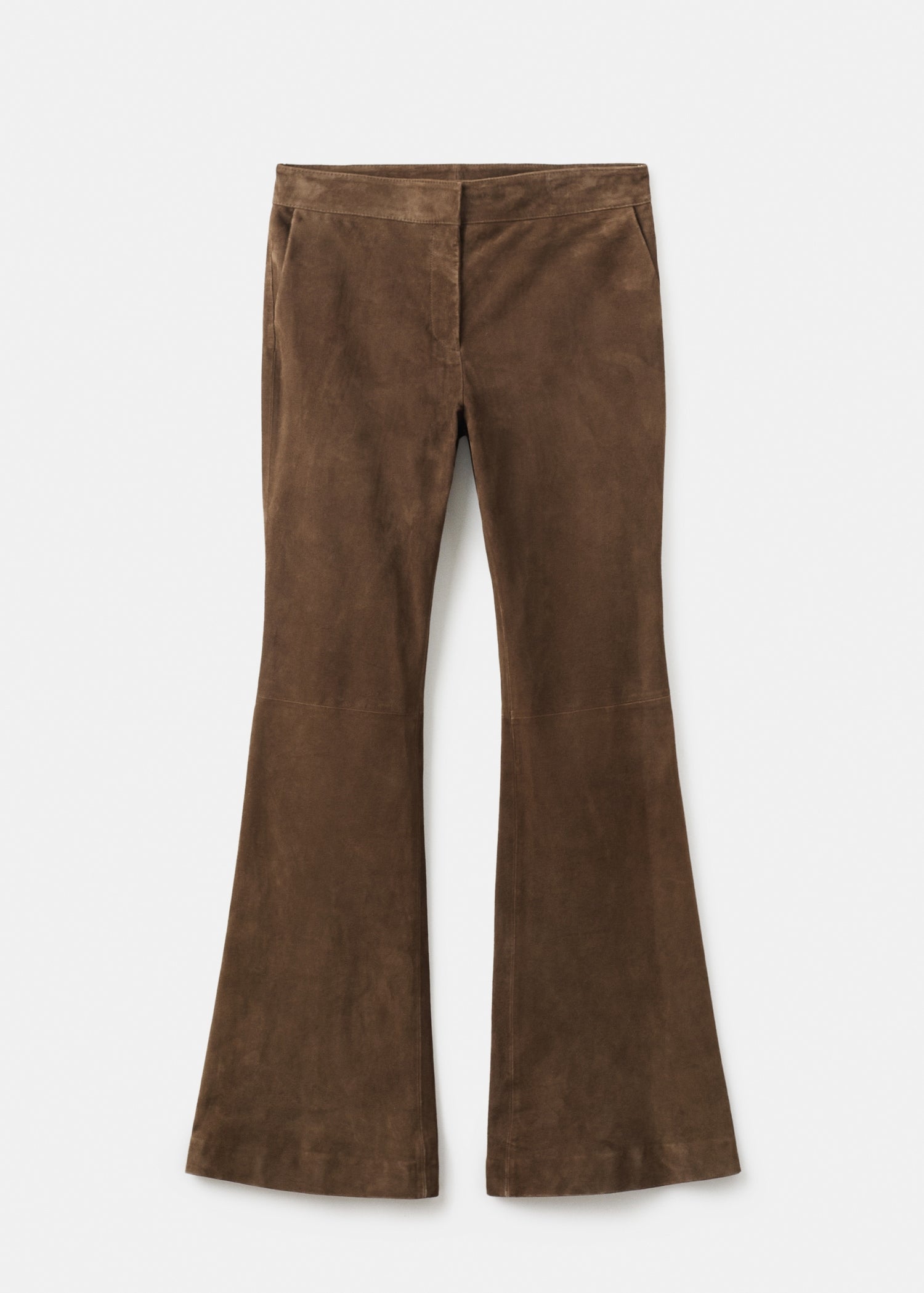 100% goat leather. Suede leather. Long Design. Flare design. Mid-rise. Two side pockets. Concealed button, hook and zip fastening. Inner lining. Total look. Online Exclusive. Selection Collection.