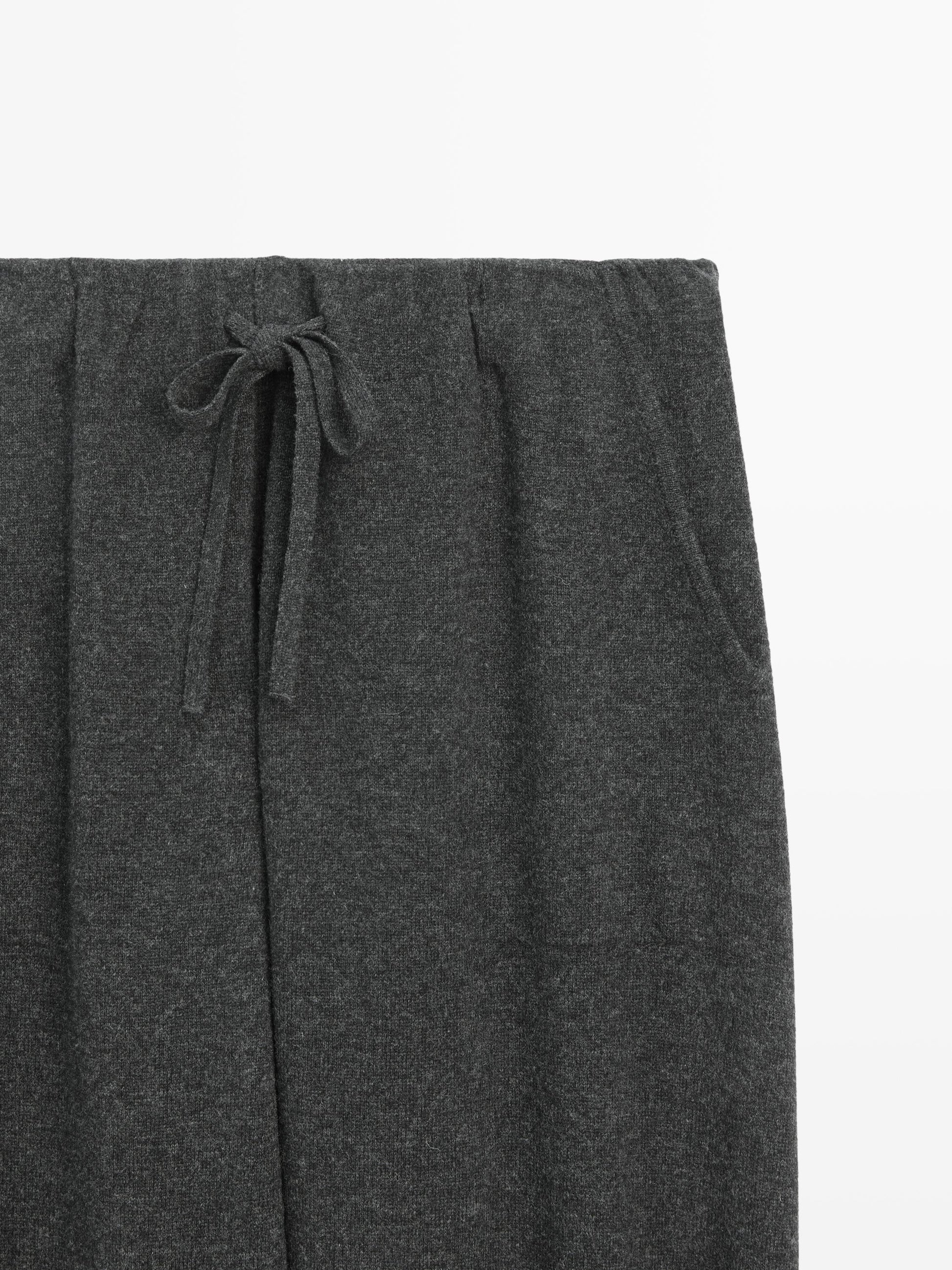 Sarouel trousers: loose-fitting silhouette, wide leg volume and ankle fit.. Two side pockets. Elasticated cuffed hem . Knit fabric.