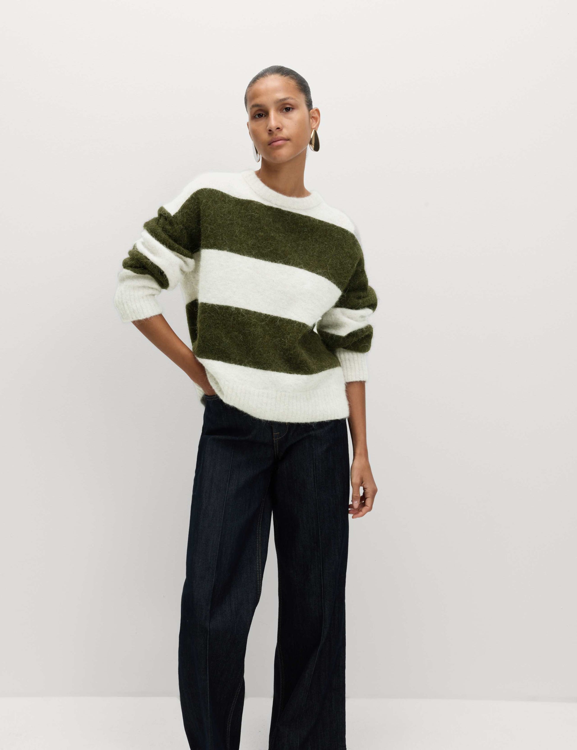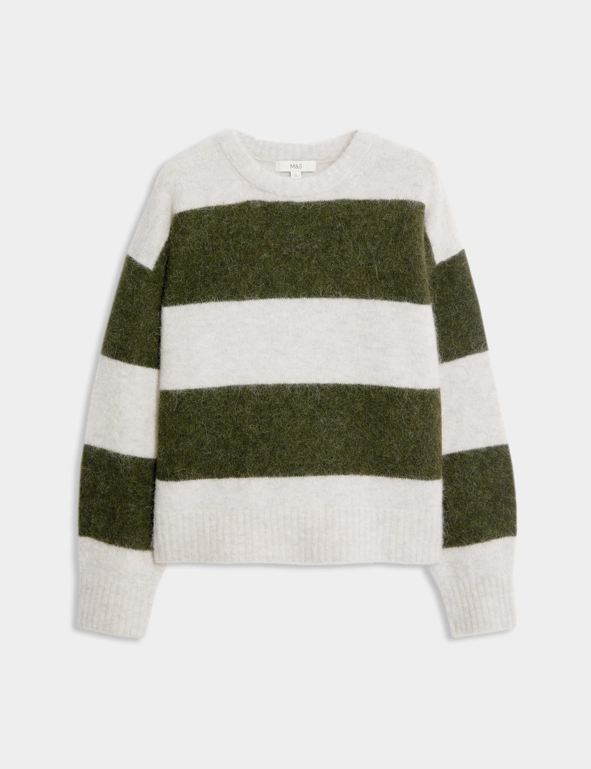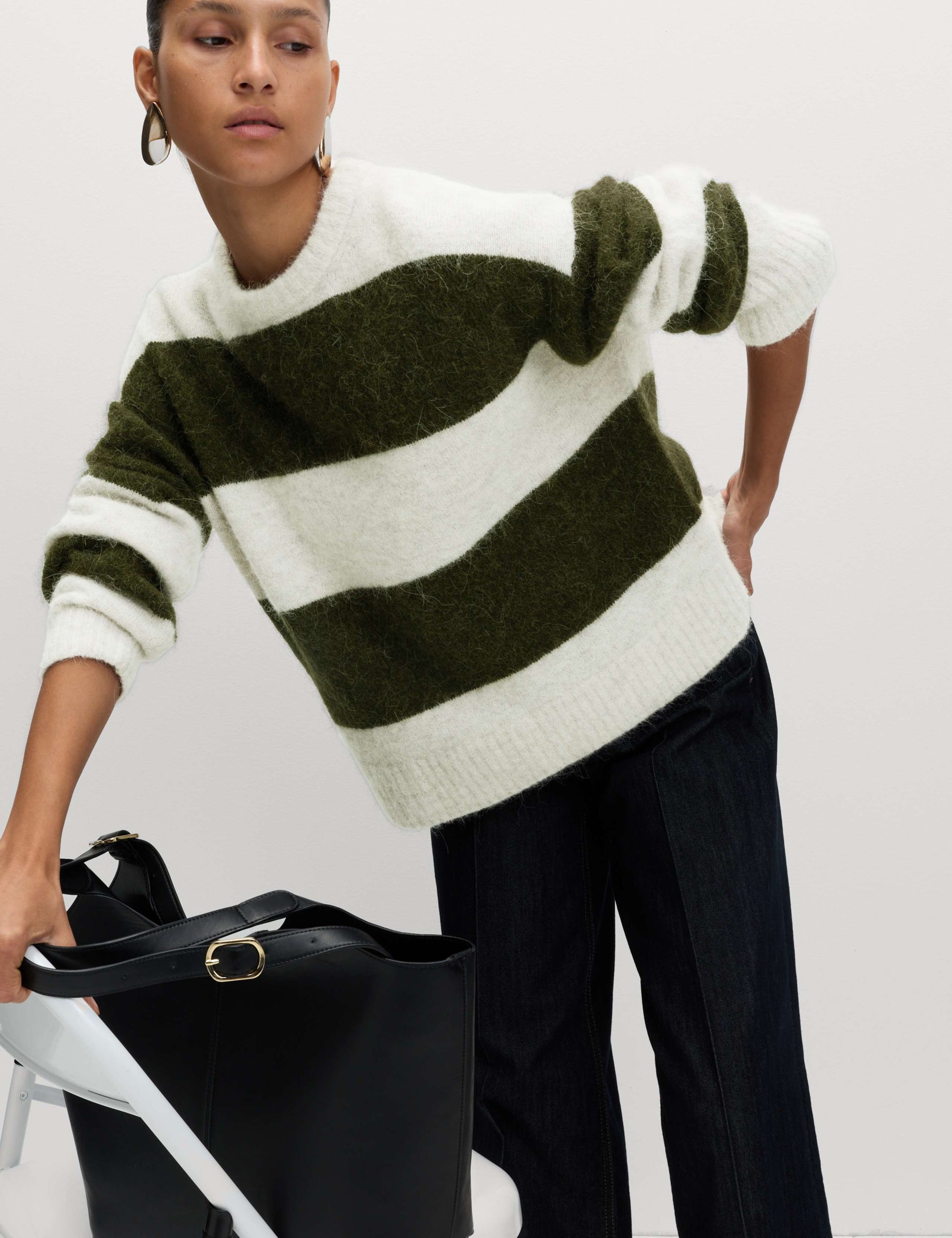 This wool and alpaca-blend jumper brings style and comfort to your cool-weather outfits. Its designed in a roomy, relaxed fit, with added stretch for ease of movement. The brushed yarn gives it a tactile feel, while the all-over stripe pattern creates a standout look.
