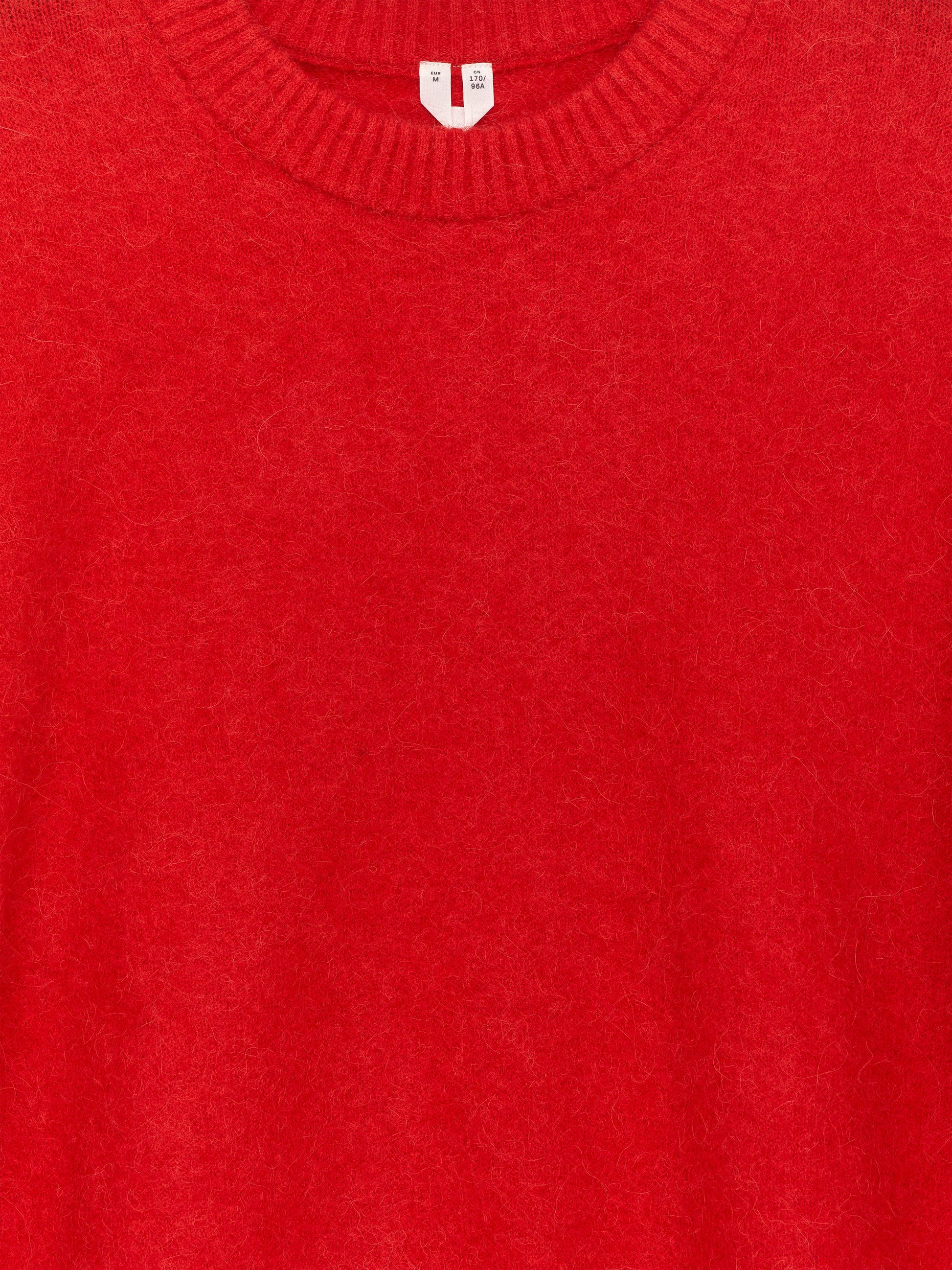 Fuzzy jumper with an oversized fit made with comfort-inducing alpaca and wool. Ribbed trims detail the look. This jumper contains 31% RAS Alpaca and 31% RWS wool (TE-00047206). Products certified to the Responsible Wool Standard (RWS) and the Responsible Alpaca Standard (RAS) contain wool and alpaca fiber from farms independently certified to animal welfare and land management requirements.