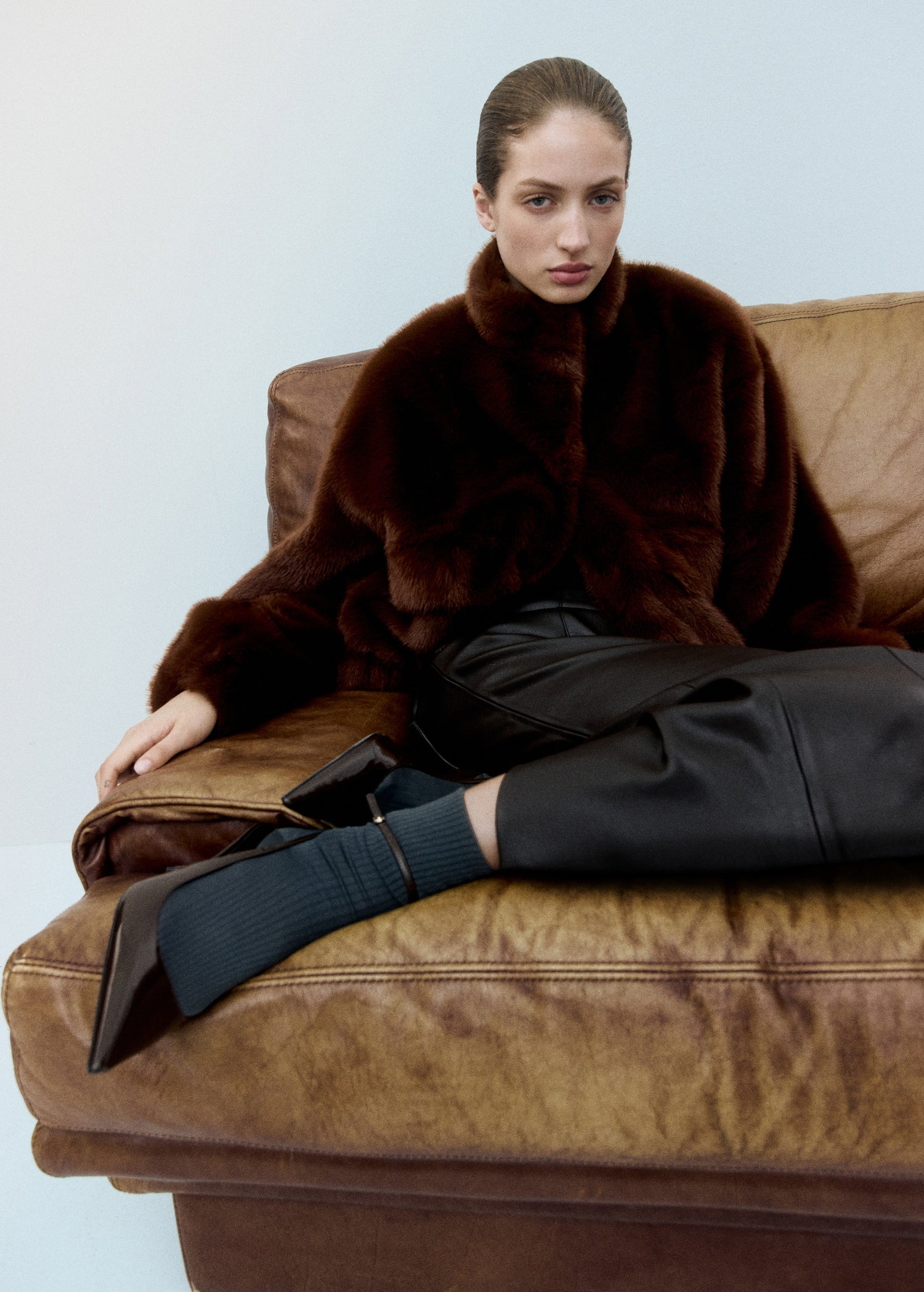 Patent leather effect. Pointed. Stiletto heel. Ankle strap closure with metal buckle. 8.5 cm heel.