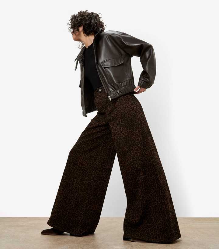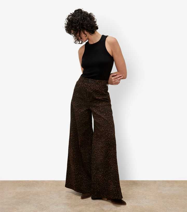 Shake up your denim roster with these brown jeans from Apricot. A striking leopard print sets a bold tone throughout the high-rise, wide-leg profile.