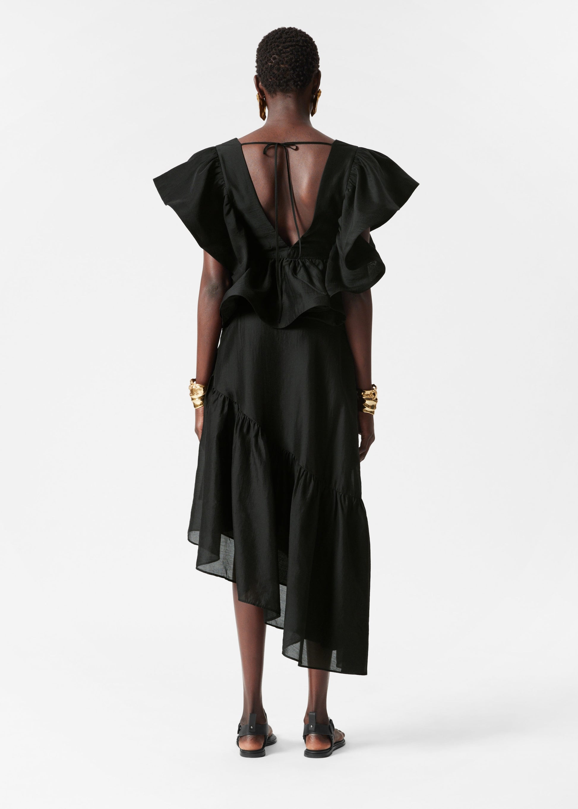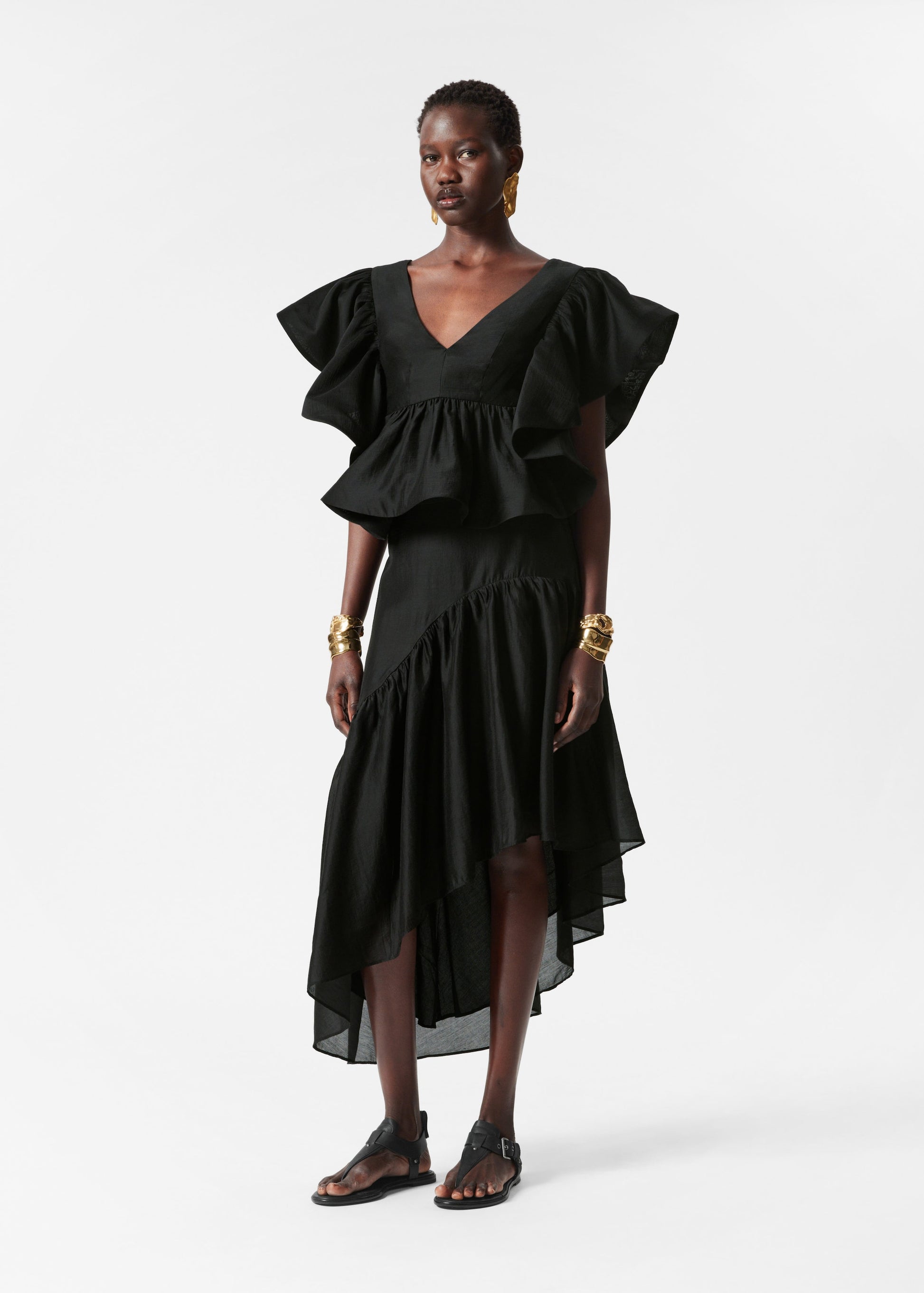 Asymmetric Ruffle Midi Skirt