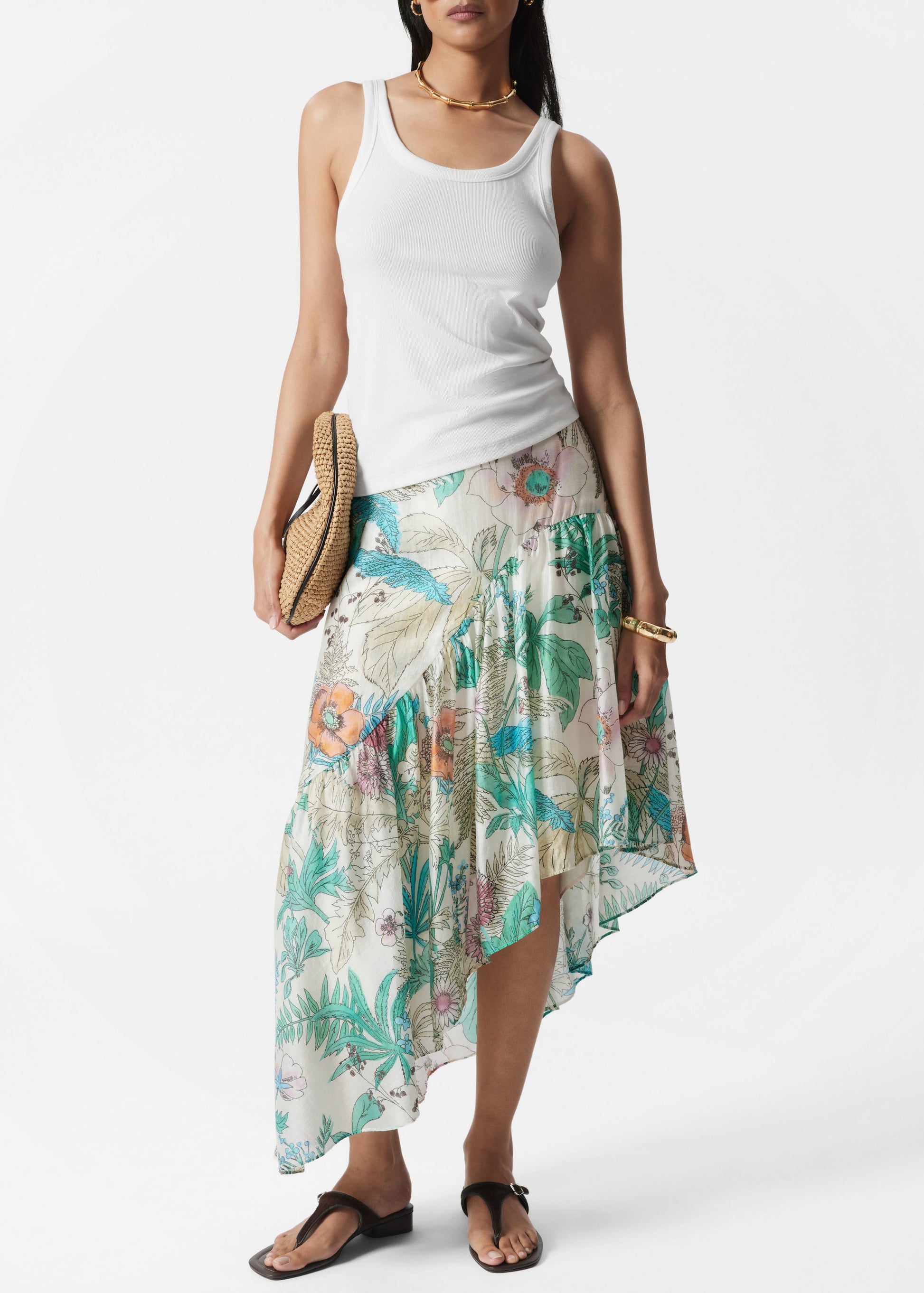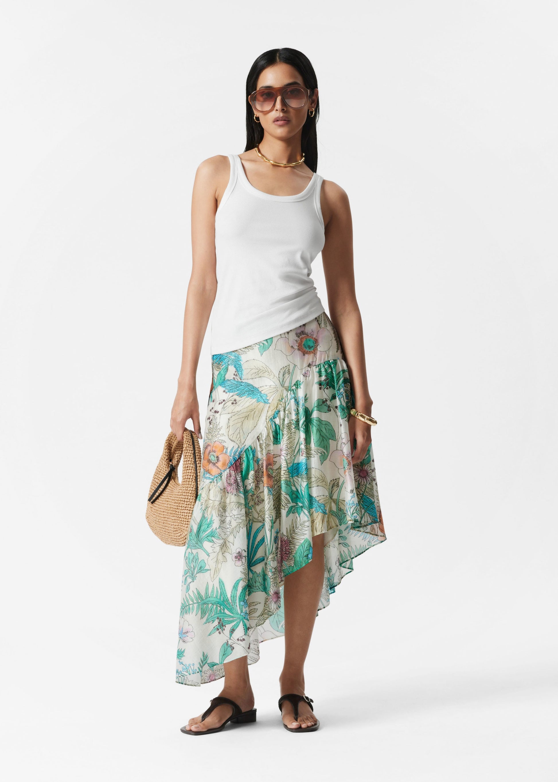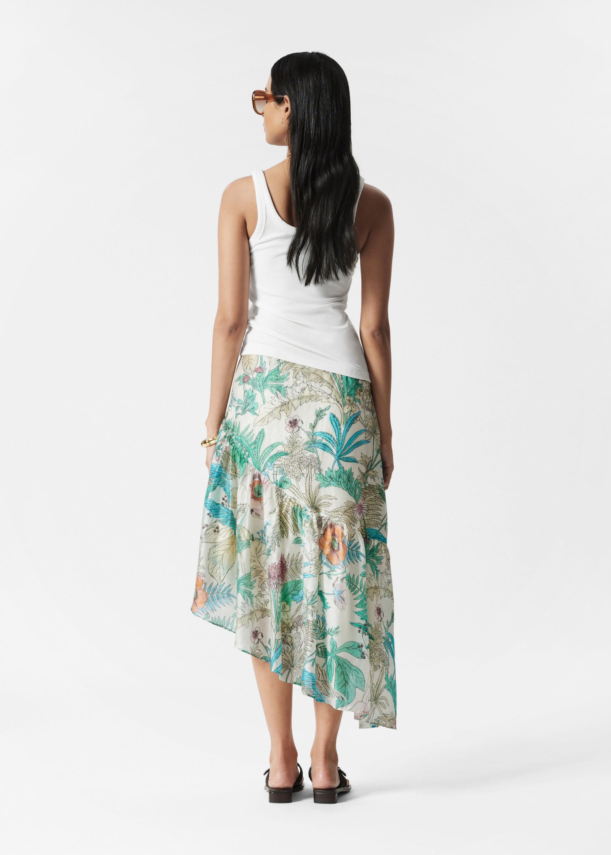 Asymmetric Ruffle Midi Skirt