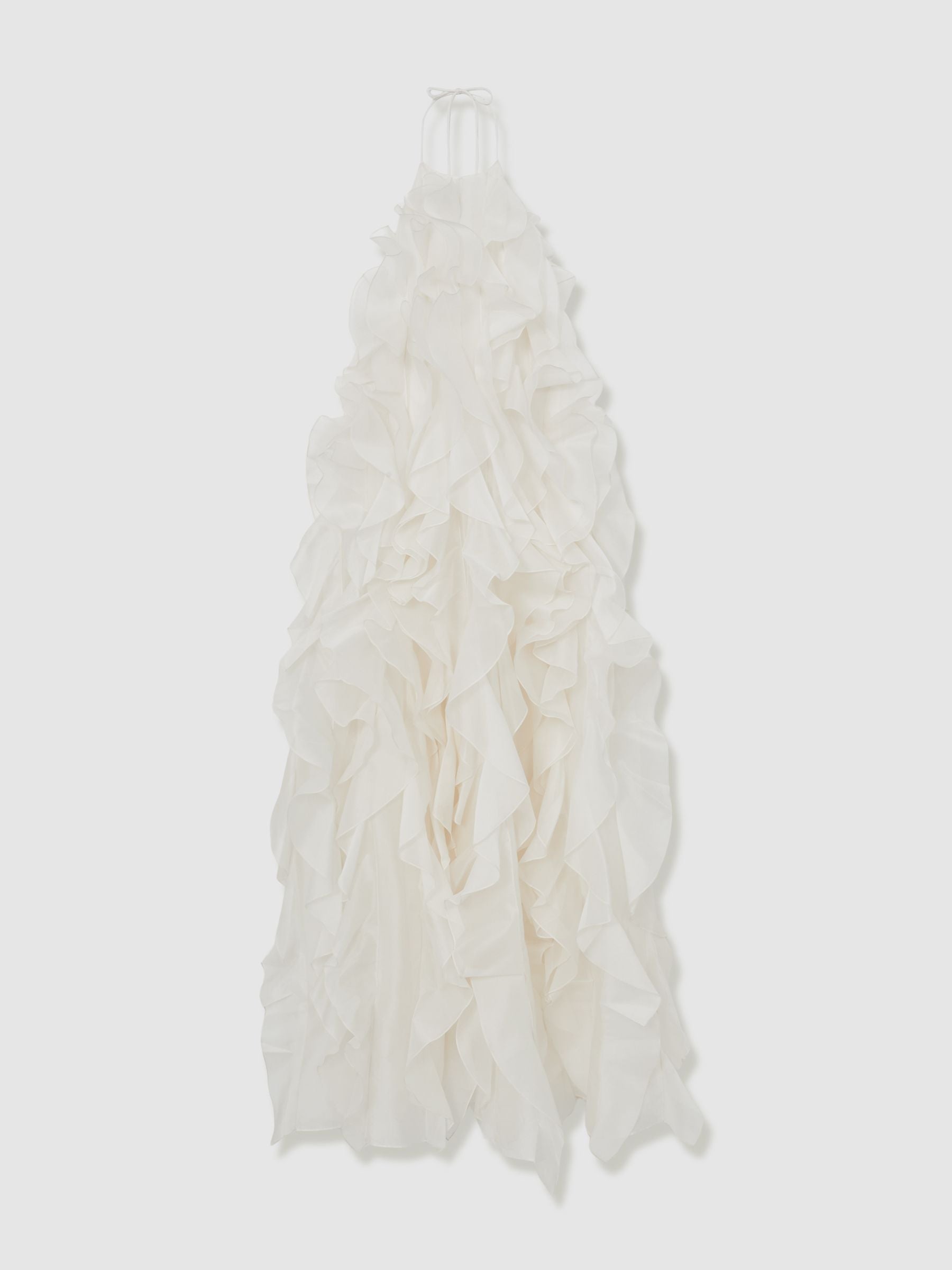 Atelier Silk-Organza Ruffle Maxi Dress in Off White
