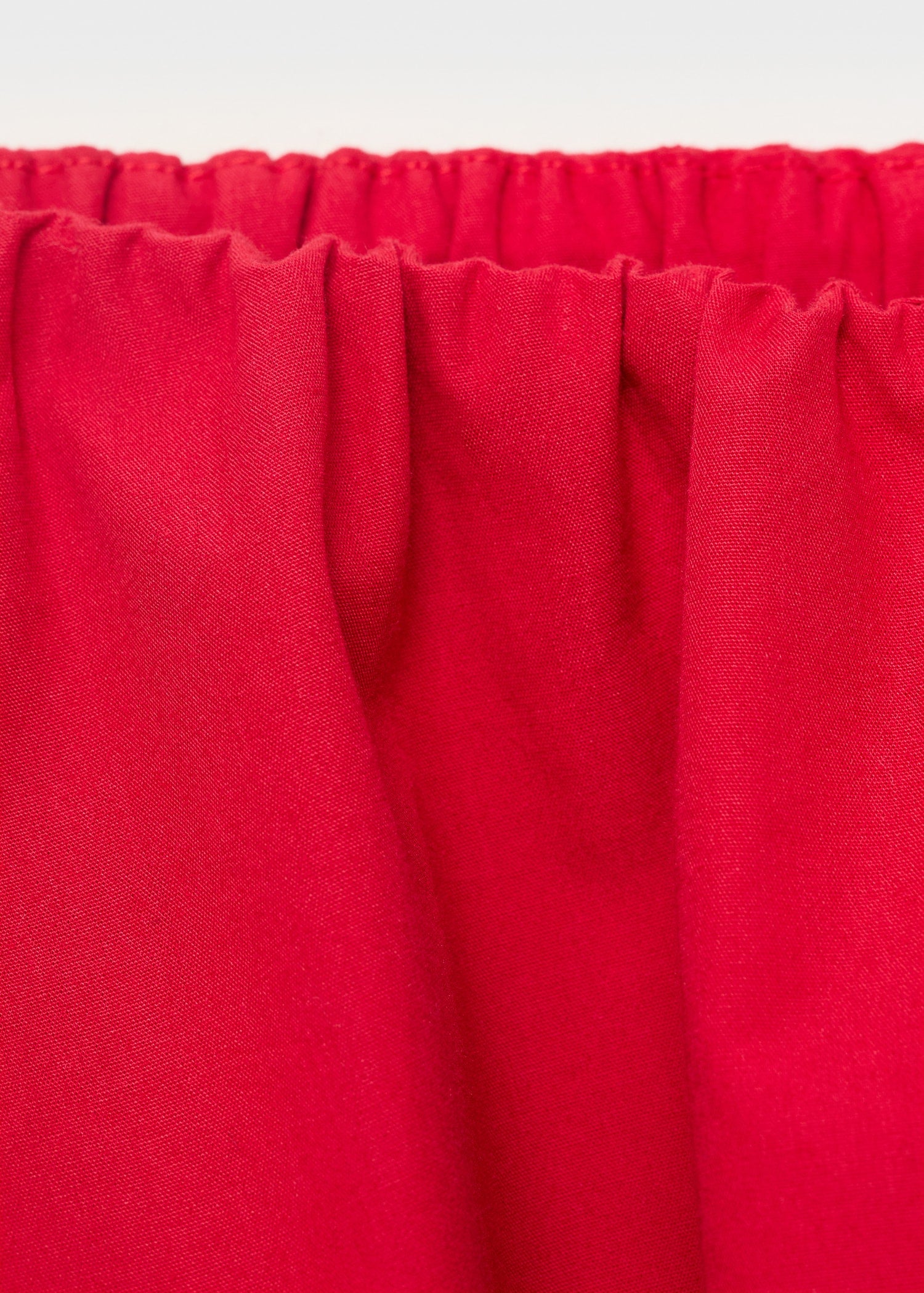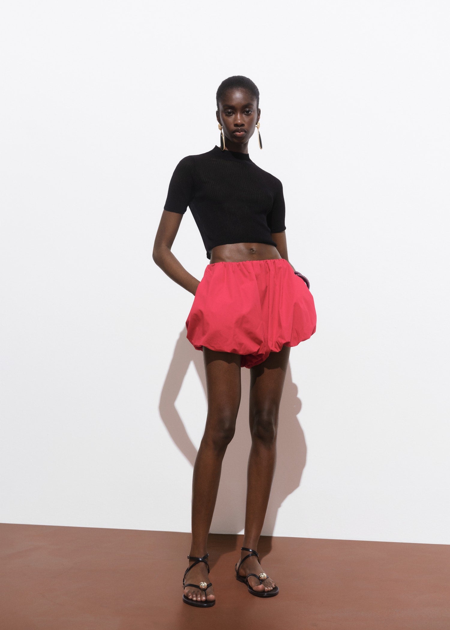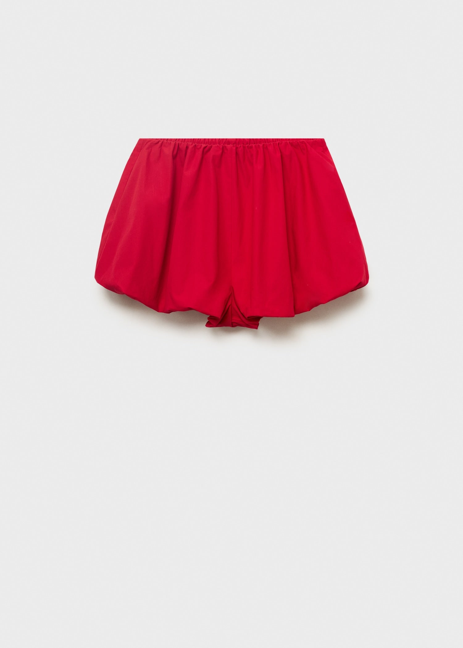 100% cotton fabric. Short design. Bubble hem. Two side pockets. Elastic waist. No fastening. Inner lining. Total look.