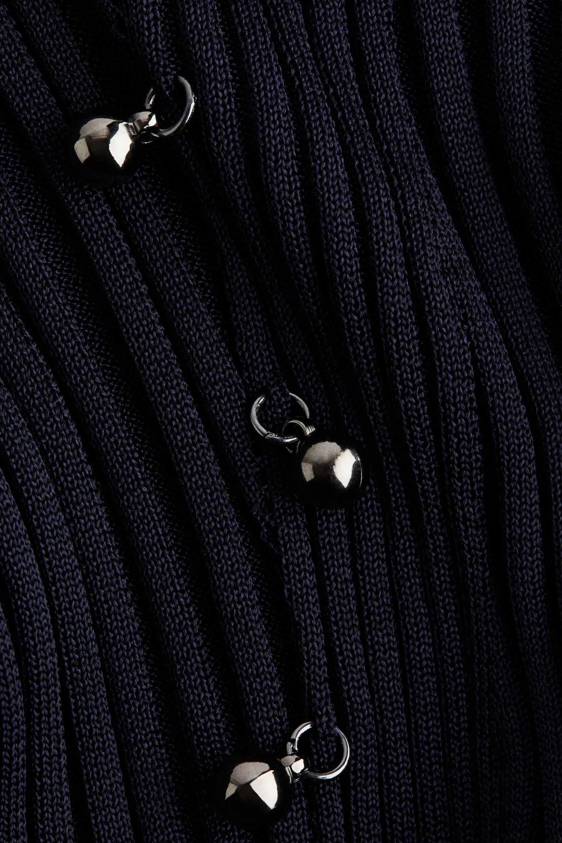 Long, fitted dress in a sheer, rib-knit viscose blend. The design features a wavy structure on the front and sleeves, embellished with shiny metal beads. Ribbed turtle neck, long sleeves and a straight hem.