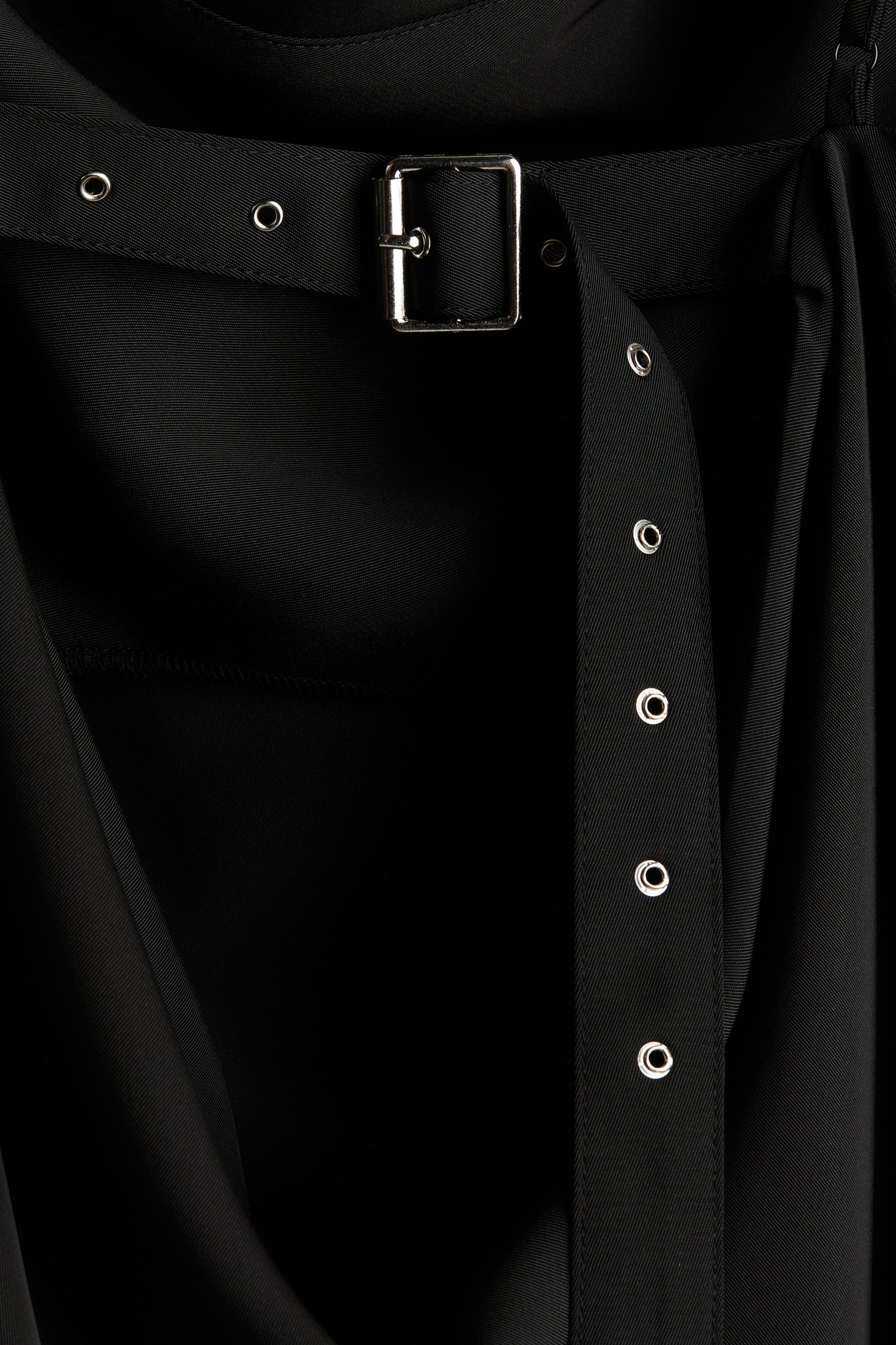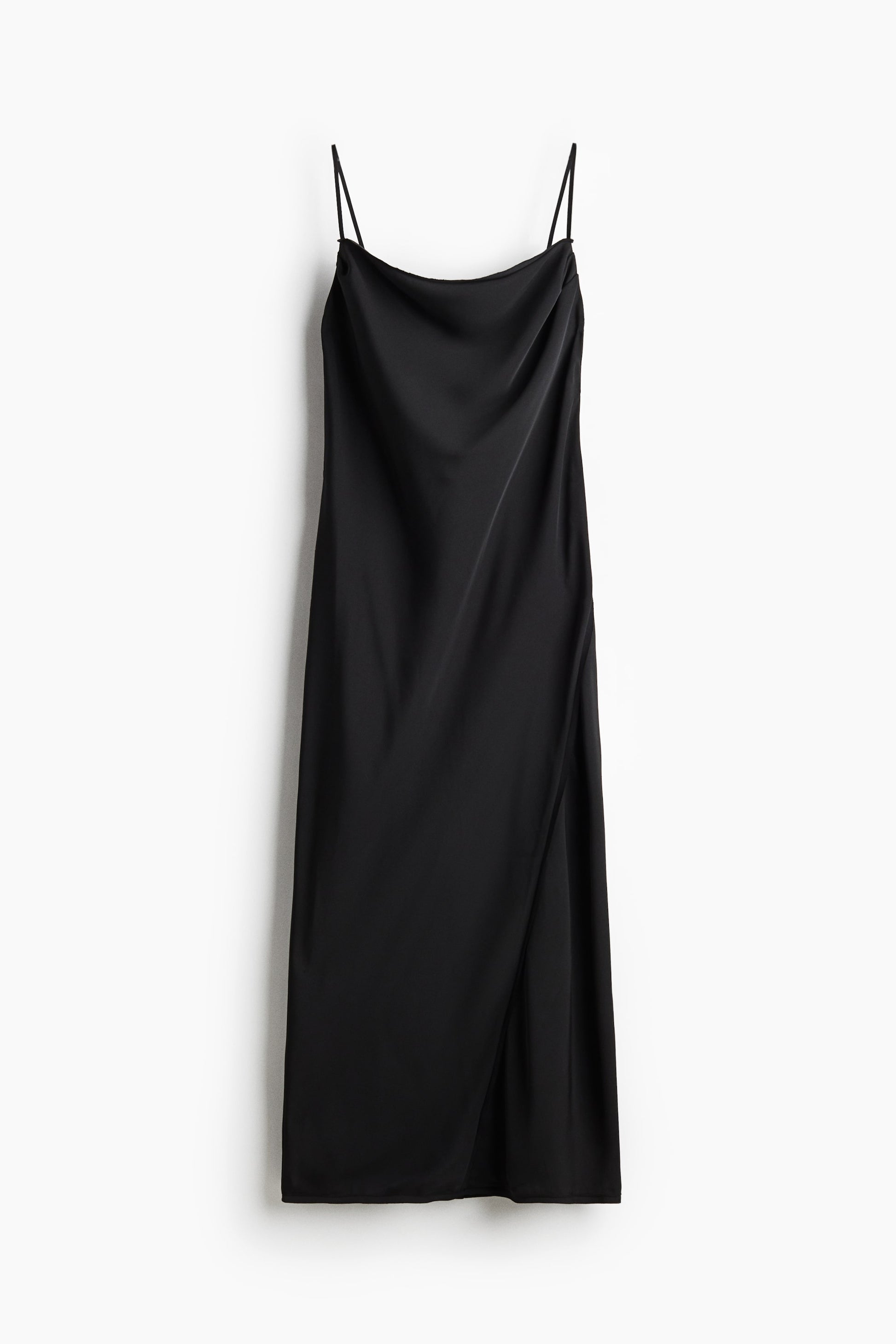 Ankle-length dress in twill with a straight neckline and adjustable spaghetti shoulder straps. Features a cowl neckline at the back with an adjustable eyelet belt above. Unlined.