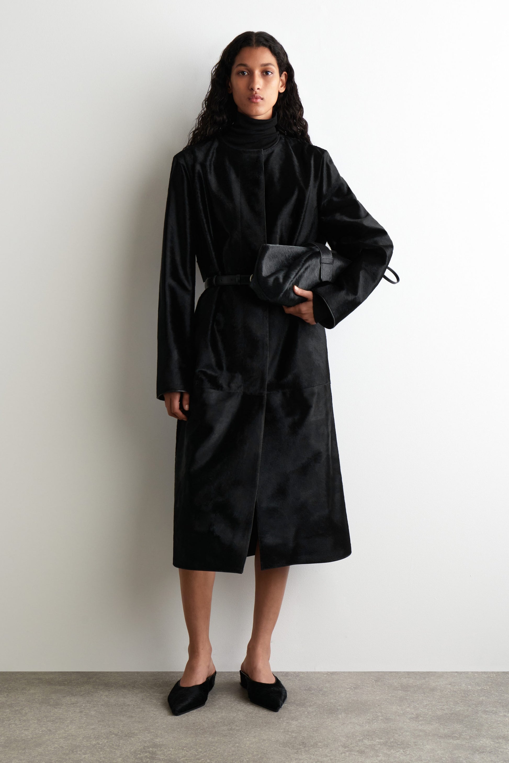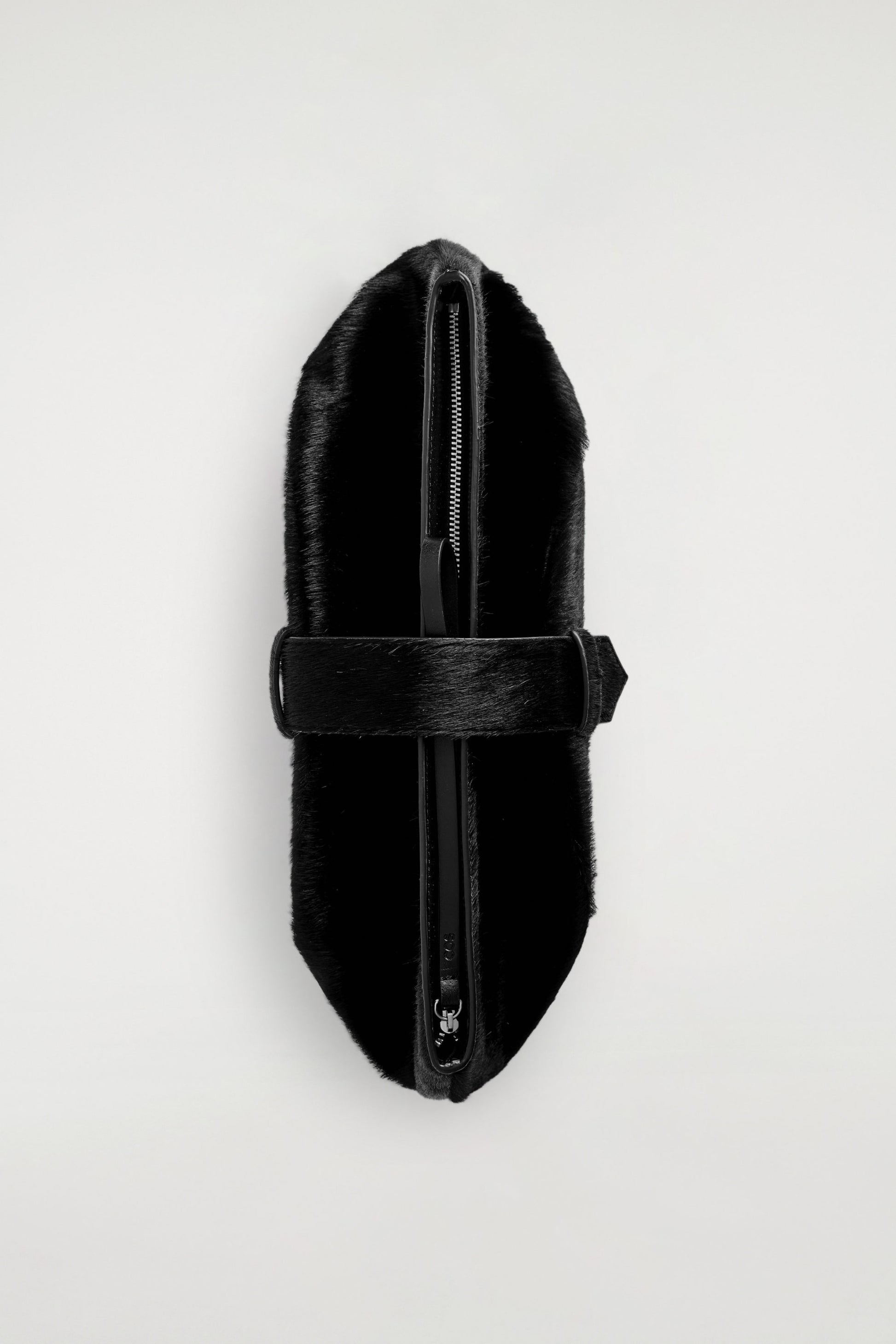 Autumn Winter 2025 takes the modern wardrobe to new heights: the epitome of quiet confidence. Crafted from tactile pony-hair leather, this sophisticated clutch has a rounded base and an elongated silhouette that folds in on itself, held in place by a detachable tonal belt. Carry it by the wrist strap or tuck it under one arm.