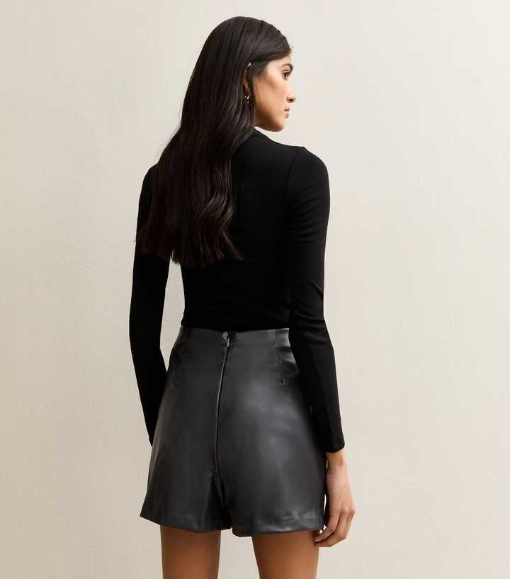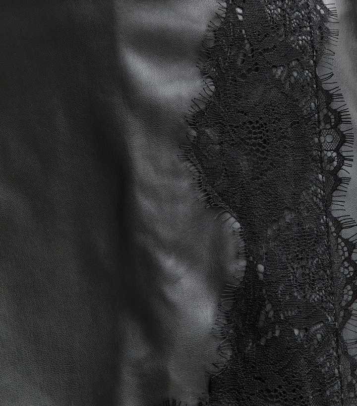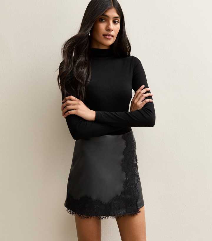 Black Faux Leather Lace Trim Wrap Mini Skort