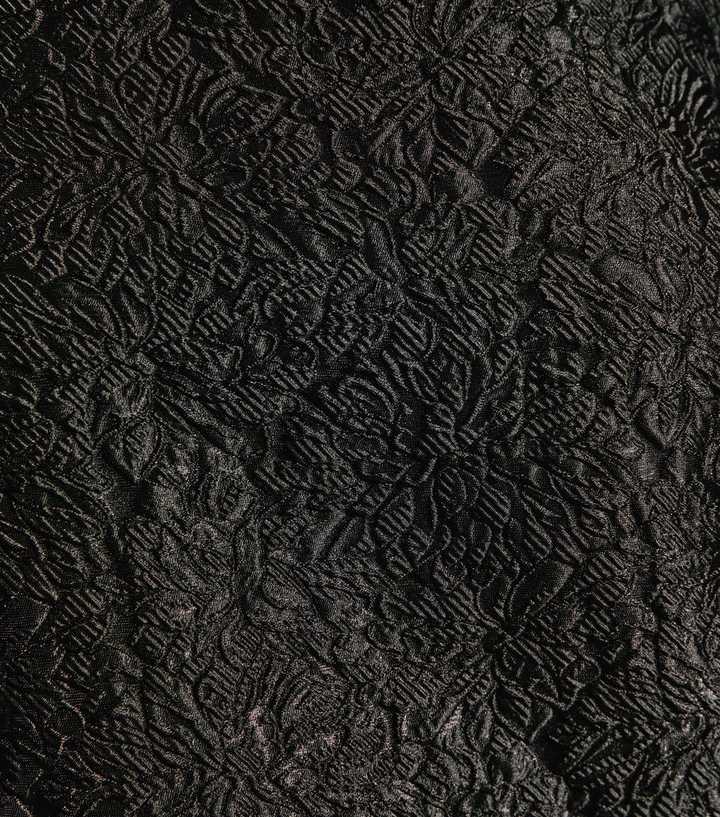 Black Floral Jacquard Faux Fur Hem Mini Dress