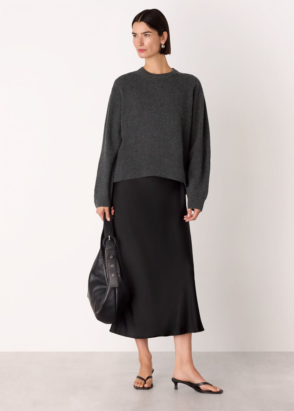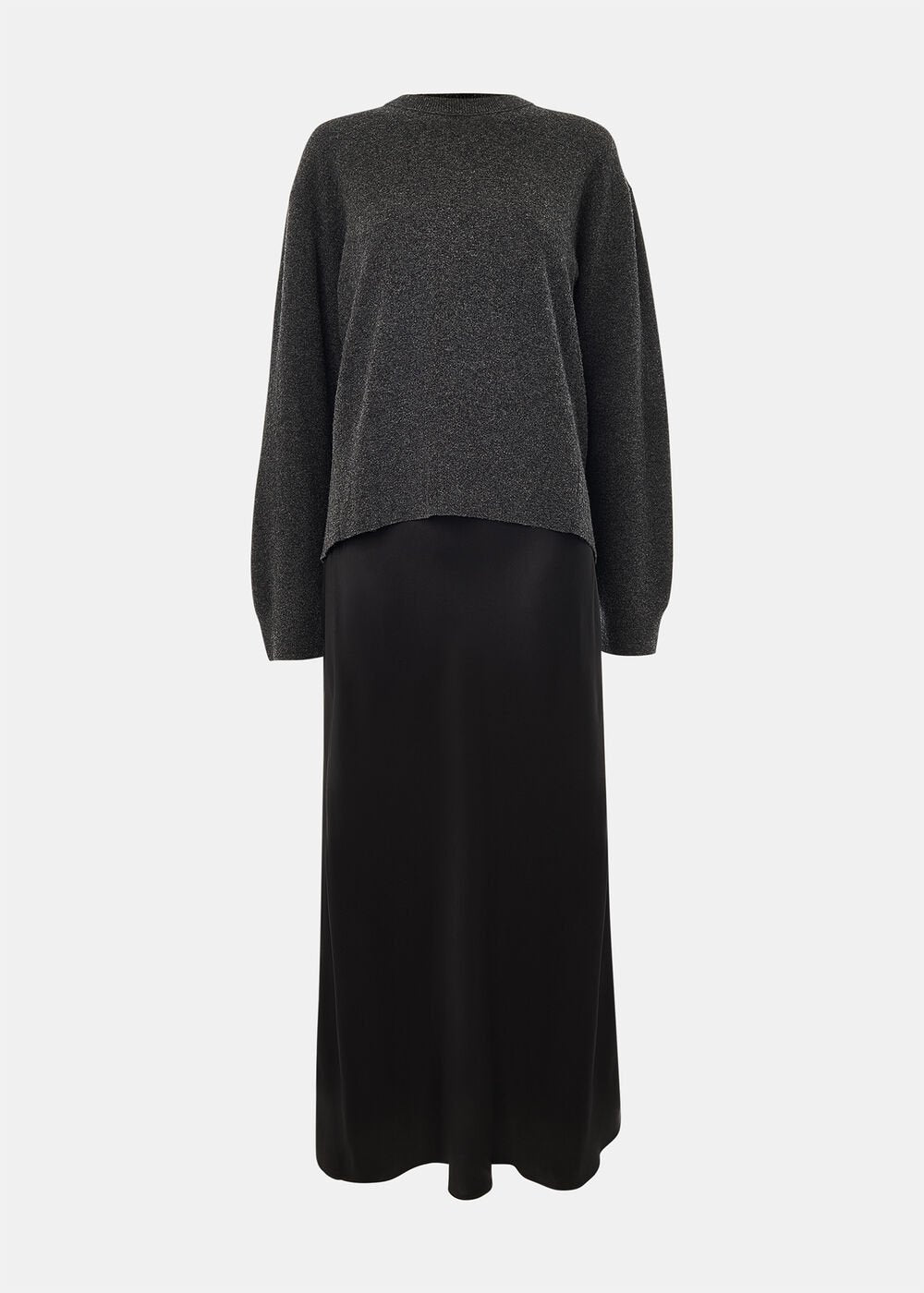 Effortlessly combining comfort and sophistication, our 2-in-1 Satin Midi Dress is designed for everyday wear. Perfect for after-work plans, it features a dark knitted jumper layered over a slip dress for a modern, feminine look. Style it your way with loafers, heeled boots or trainers.