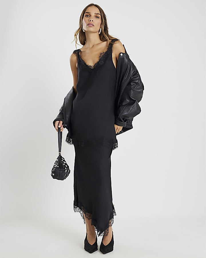 Black Sleeveless Lace Trim Tank Top