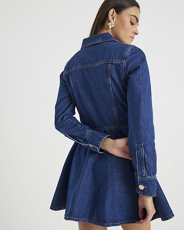 Blue Denim Long Sleeve Mini Dress