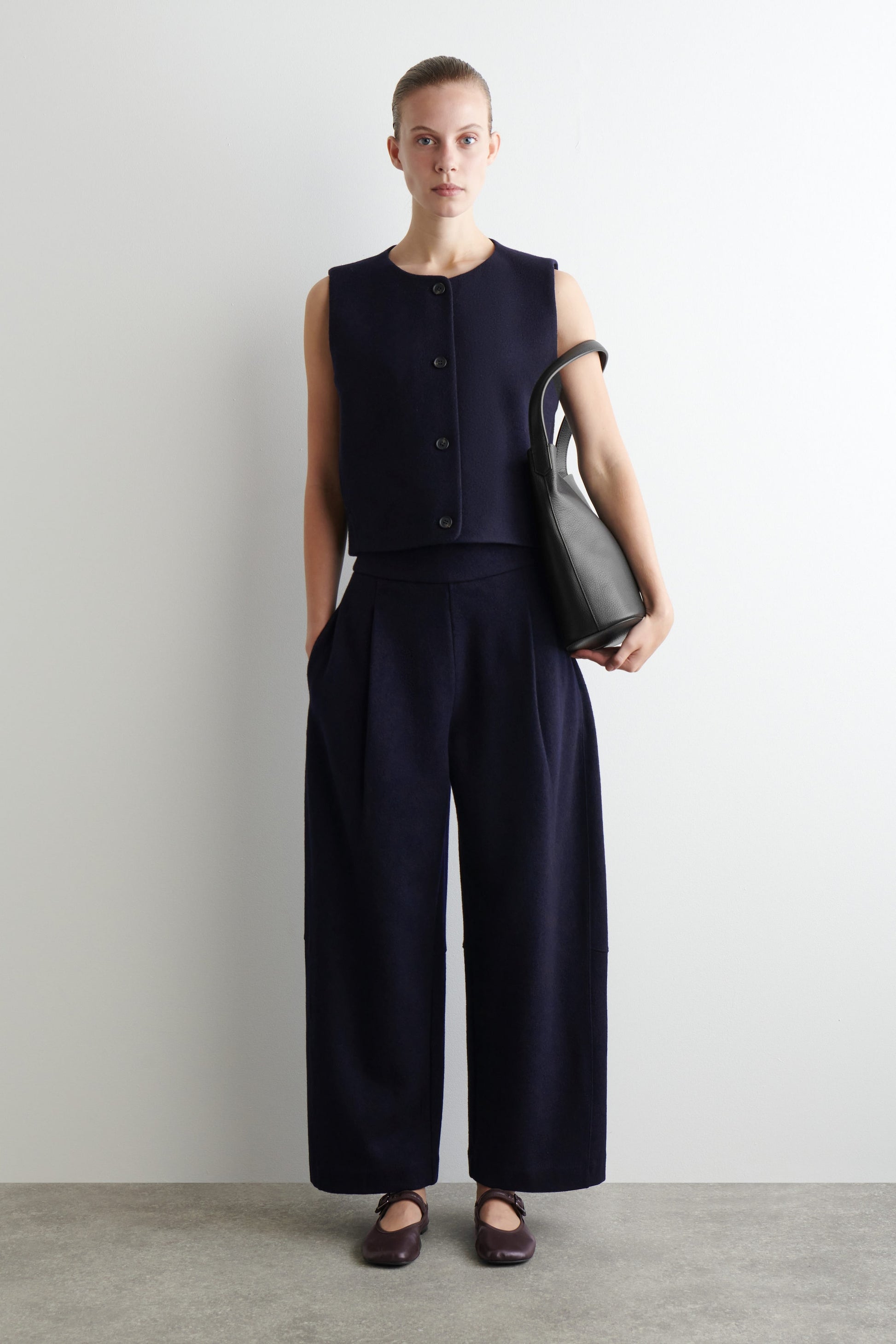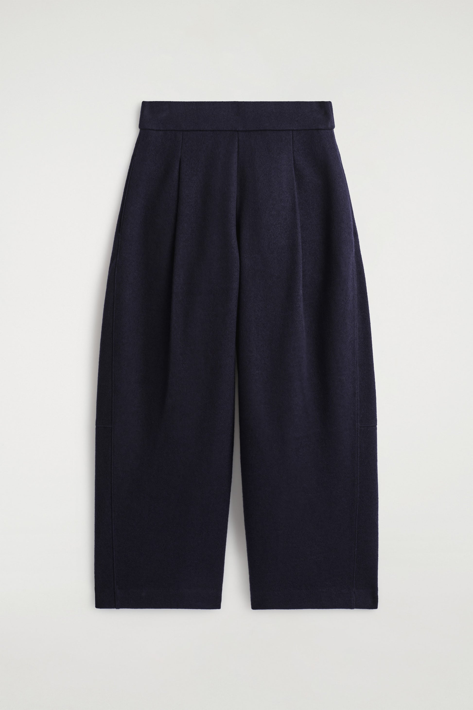This season, the womenswear team redefine tailoring through modern silhouettes. Offered in timeless navy, these trousers are made from a merino wool and cotton blend that's boiled for a premium handle and designed in a curved barrel-leg shape. The elasticated waistband ensures comfort.