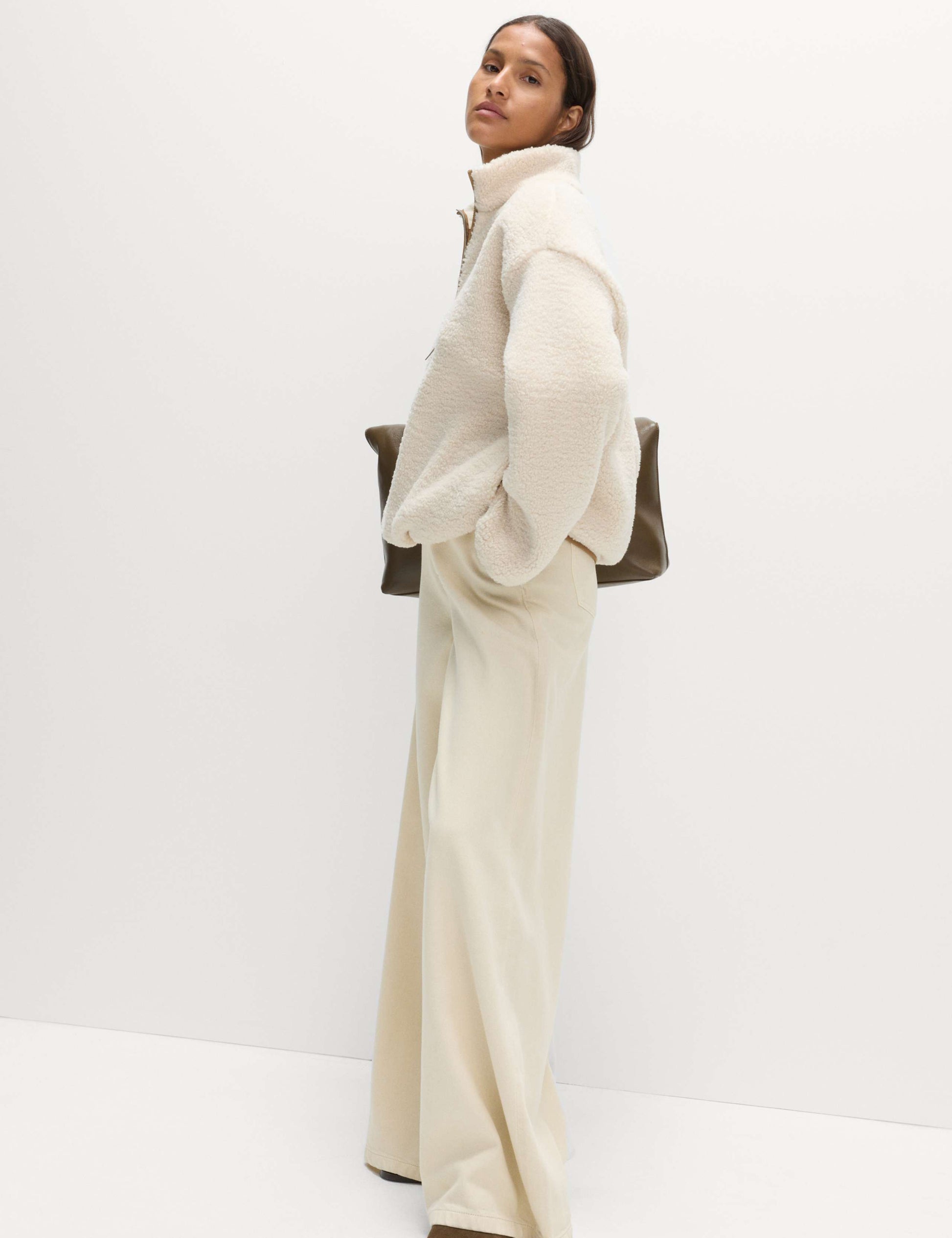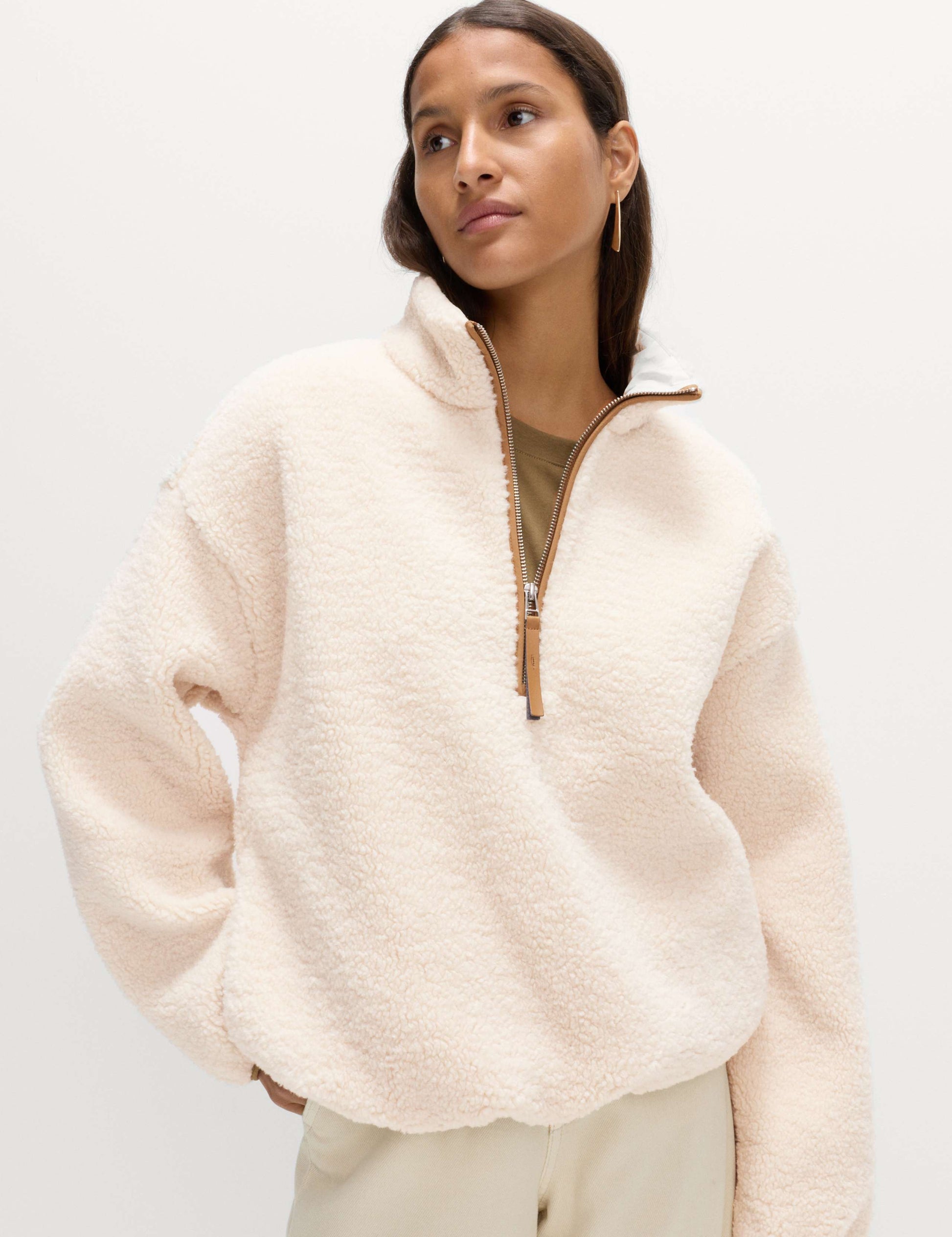This cosy borg sweatshirt is a cold weather essential. Regular fit, with a stylish half-zip fastening and a warm funnel neck. Pockets are ideal for warming hands or storing your essentials.
