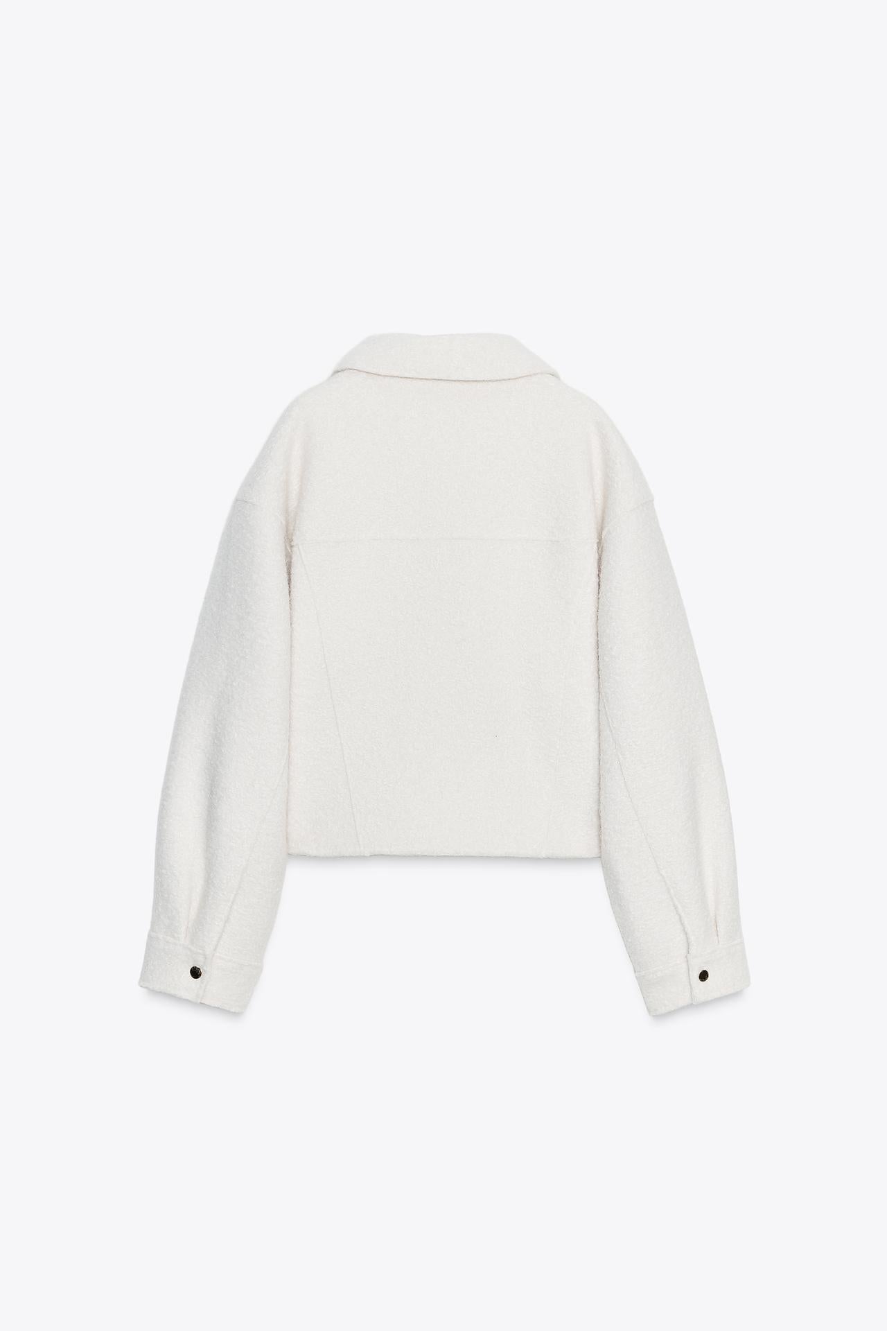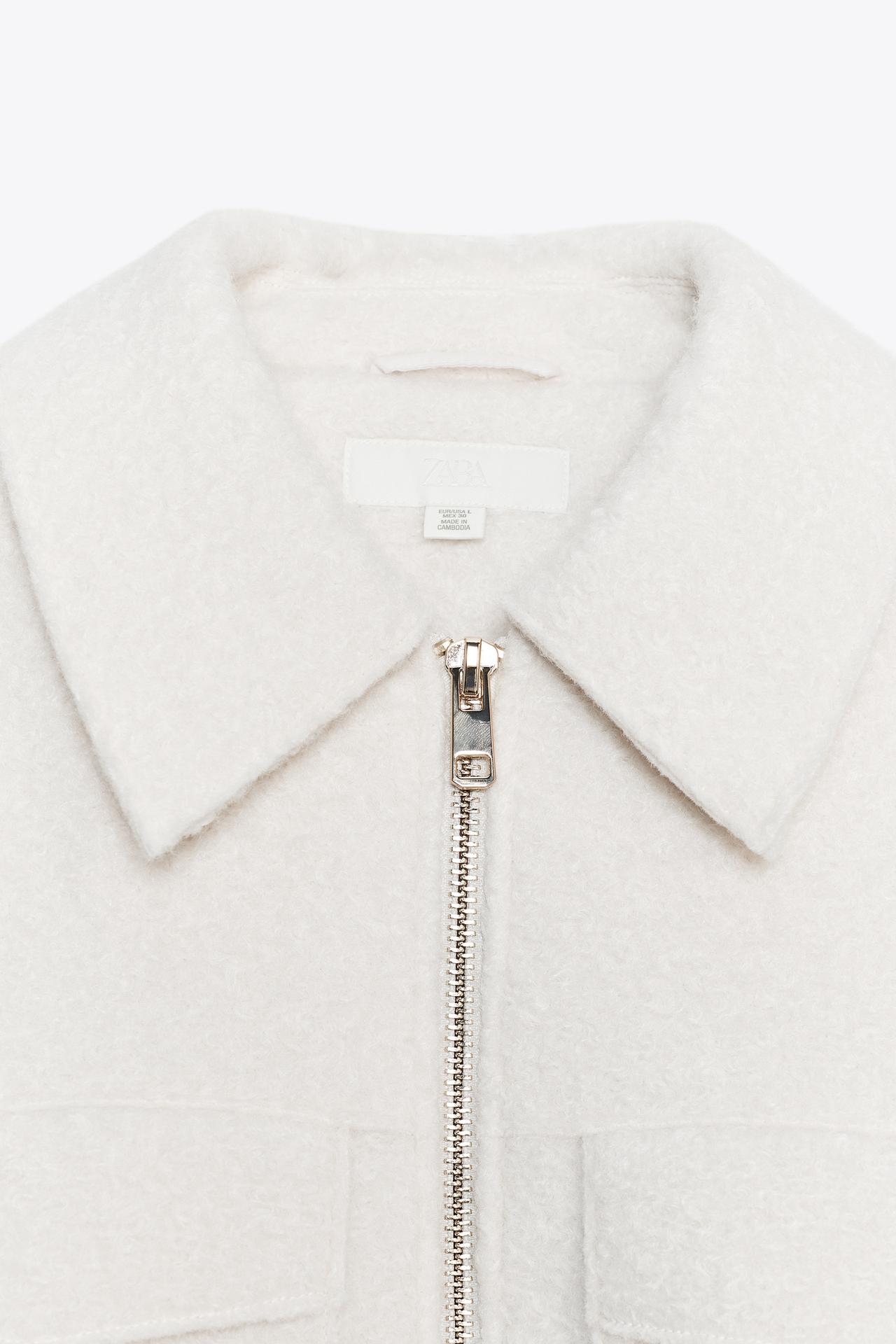 Jacket with a lapel collar and long sleeves. Front patch pockets with concealed snap-button fastening. Zip-up front.