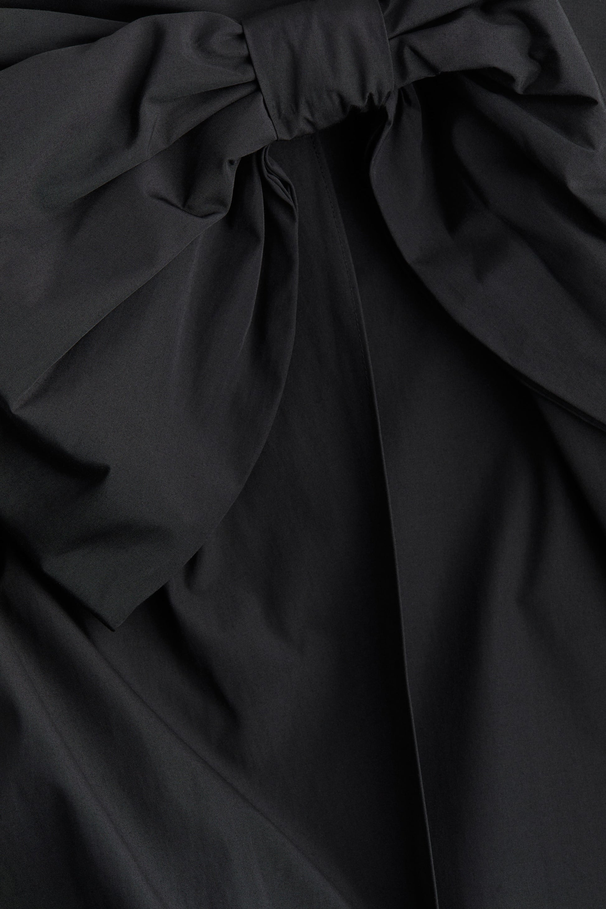 Ankle-length, fitted skirt in woven fabric featuring a wrapover front with a voluminous bow at the top. High waist with a concealed zip at the back, and a straight-cut hem with a slit at the front. Unlined.