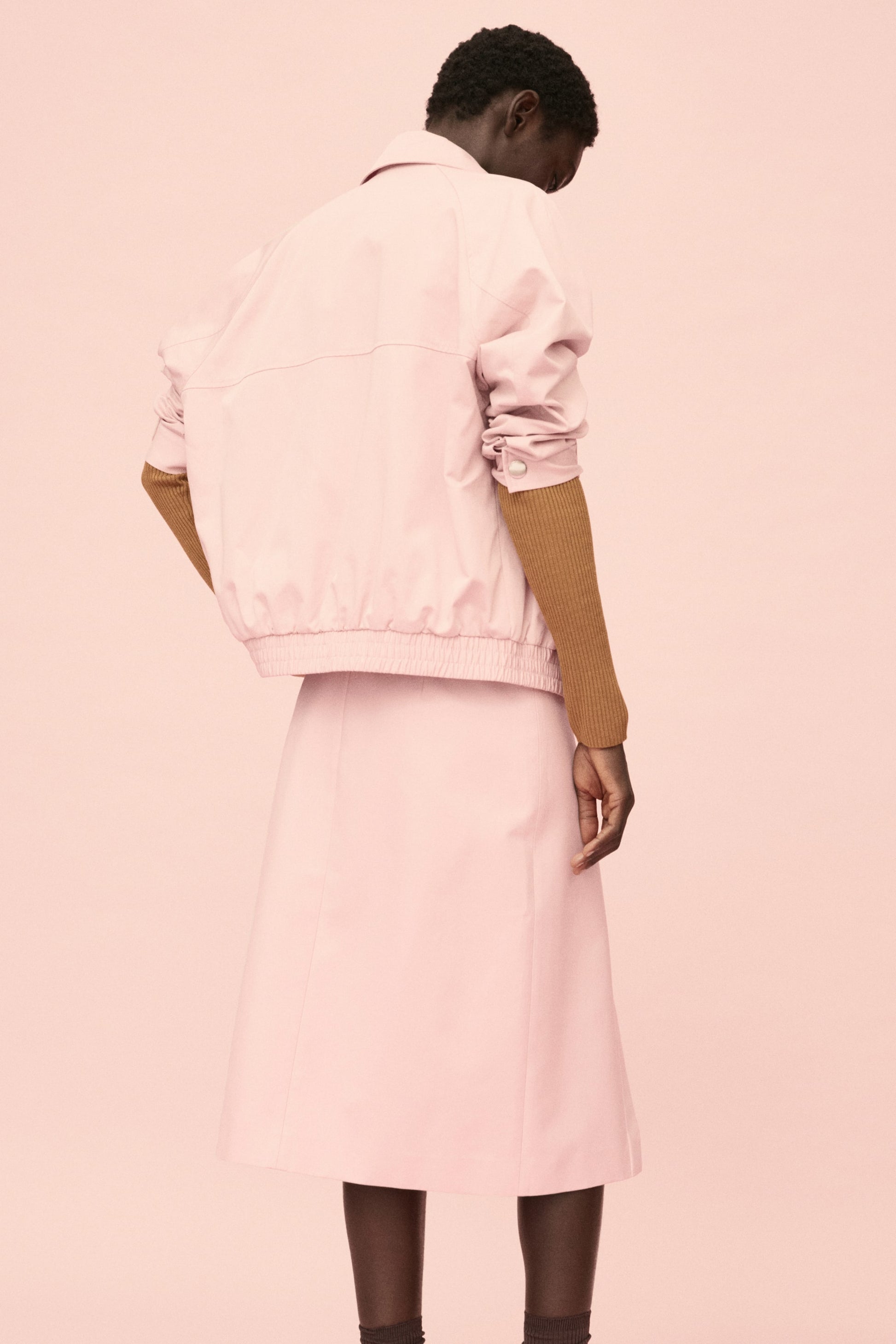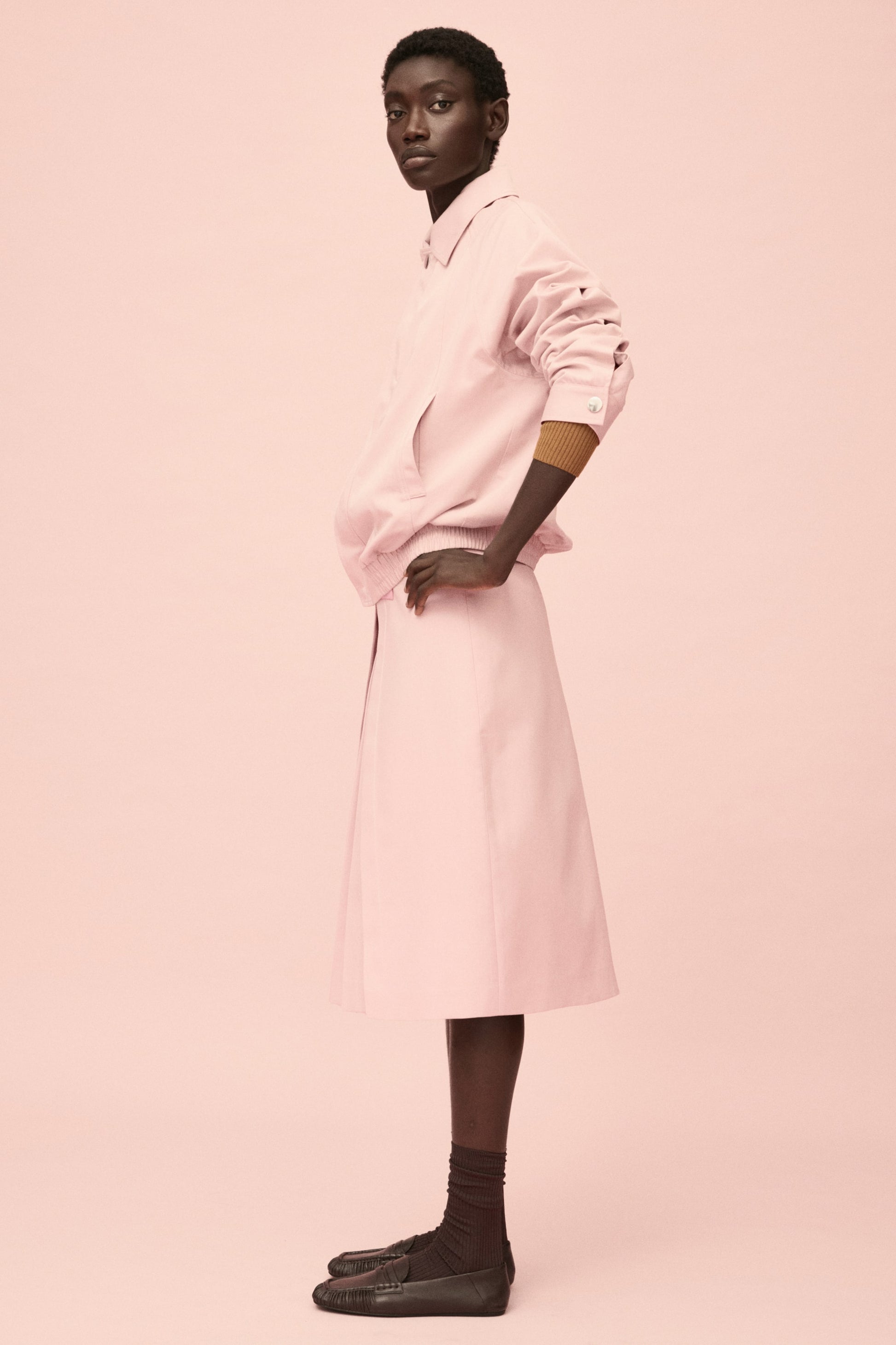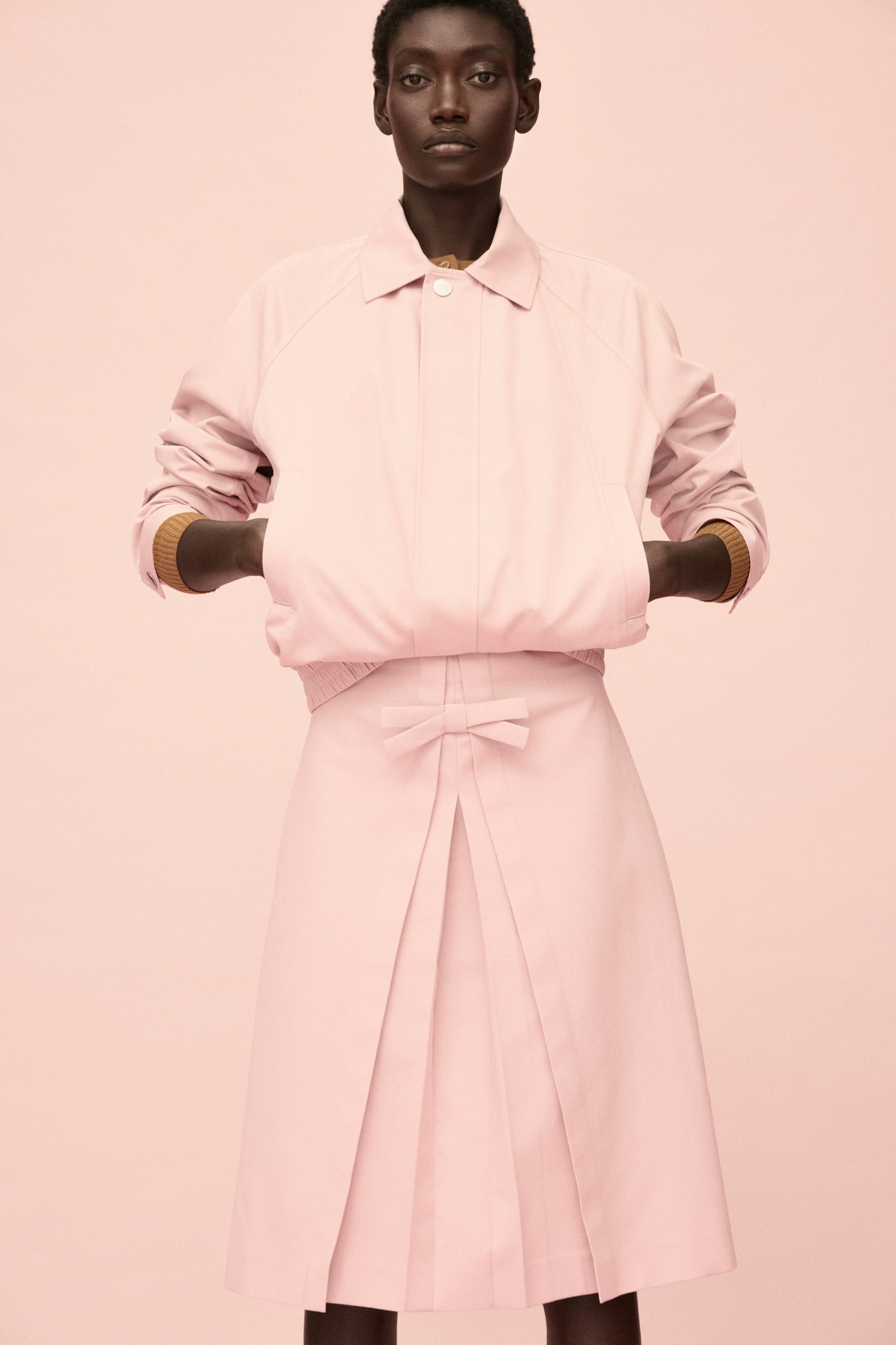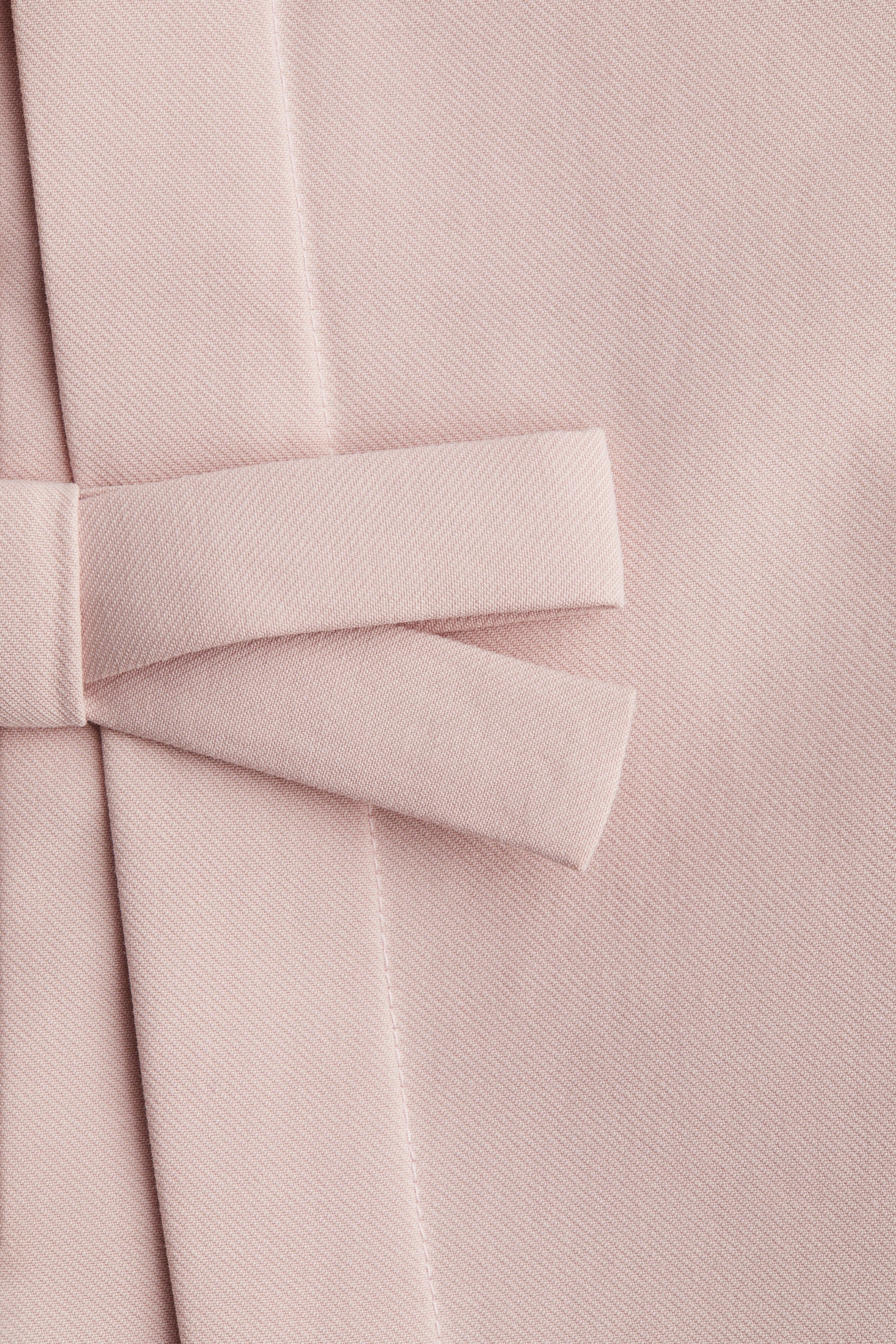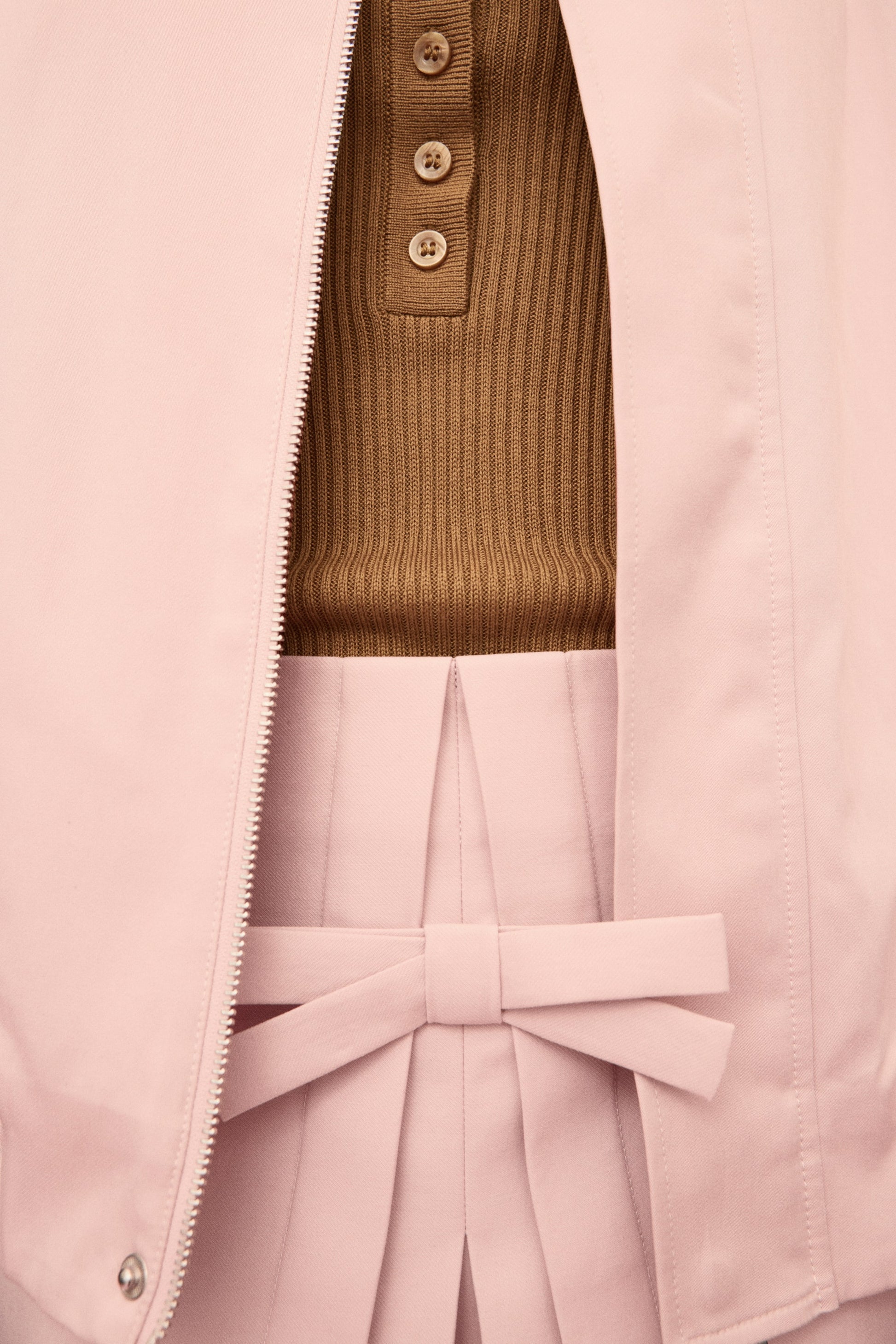 Knee-length skirt with pleats and a sewn-on bow at the front. Concealed zip at the back.