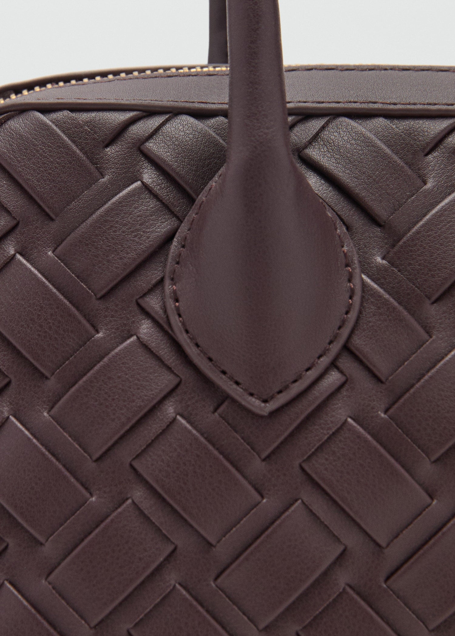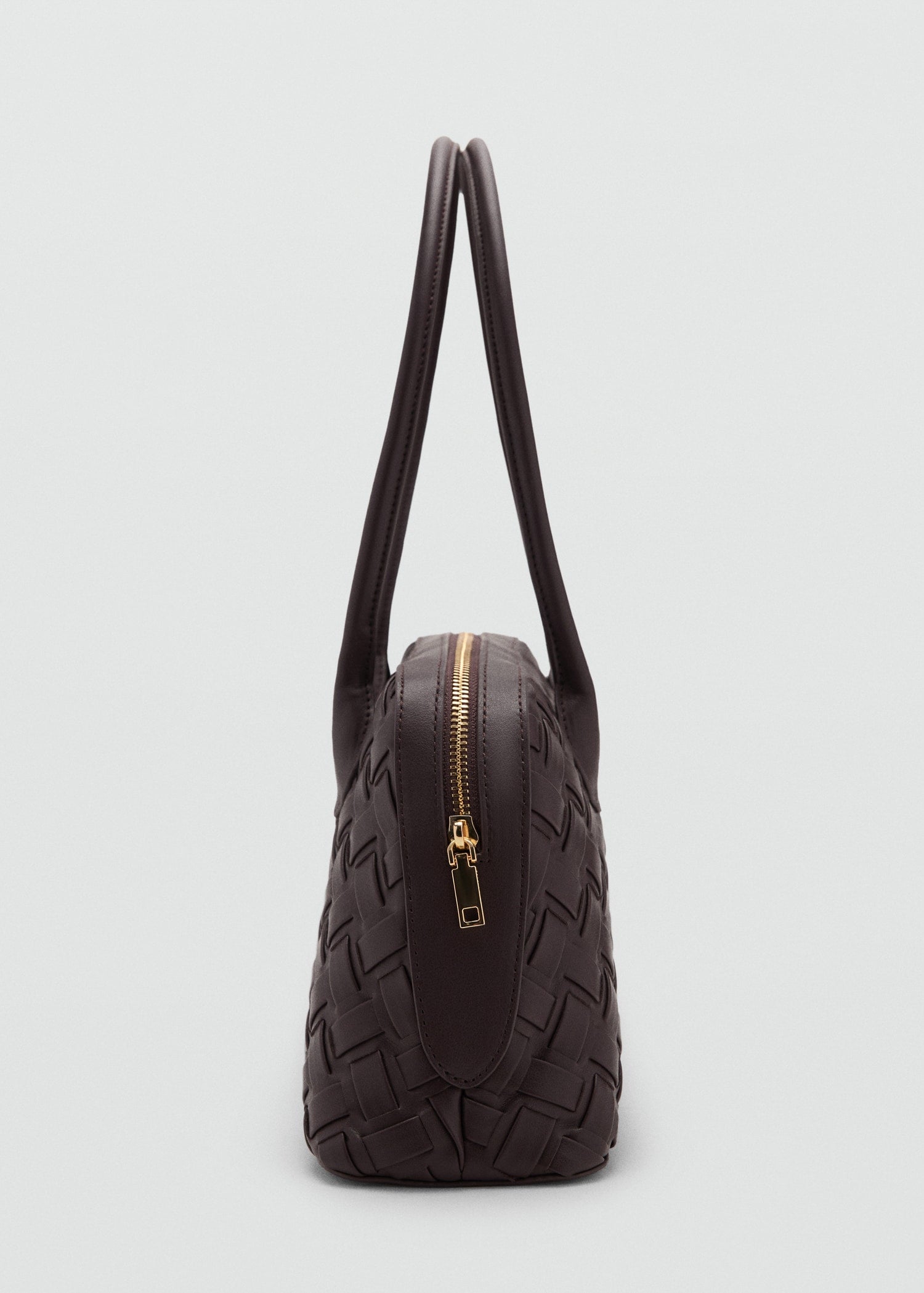Medium. Bowling style. Braided design. Two shoulder straps. Zip closure. Inner lining.
