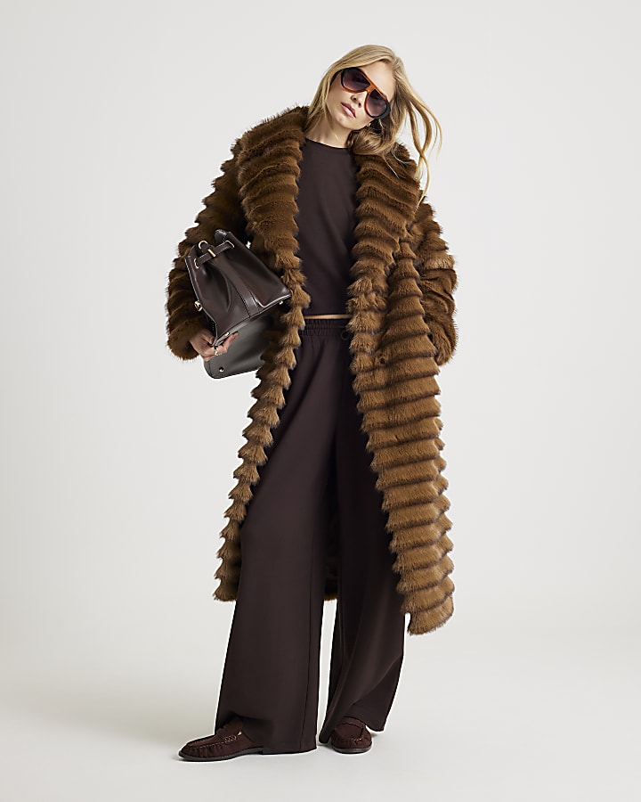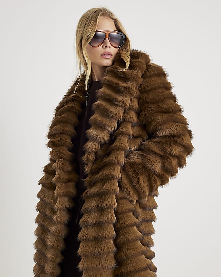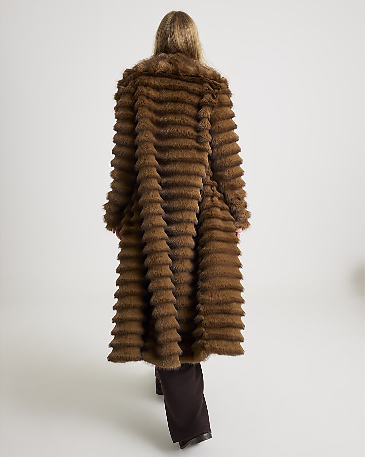 Brown Pelted Faux Fur Longline Coat