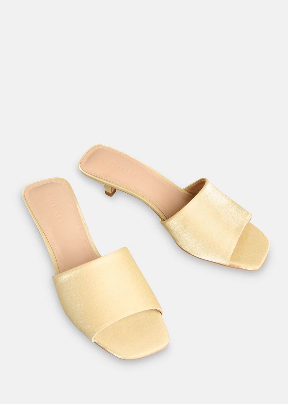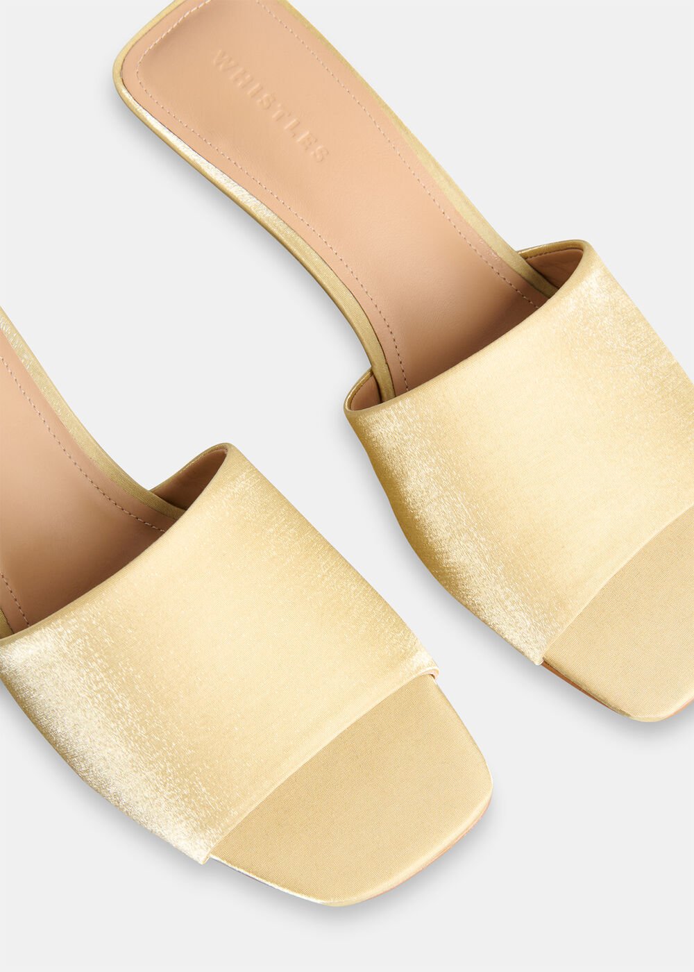 Our Satin Slip-On Heeled Mules capture the essence of spring-summer style. Theyre crafted in a pale yellow hue from a satin fabric, complemented with a chunky toe strap, smooth leather footbed and a chic kitten heel. Theyre perfect for weddings, garden parties and evening dinners, bringing a touch of relaxed sophistication to your looks.