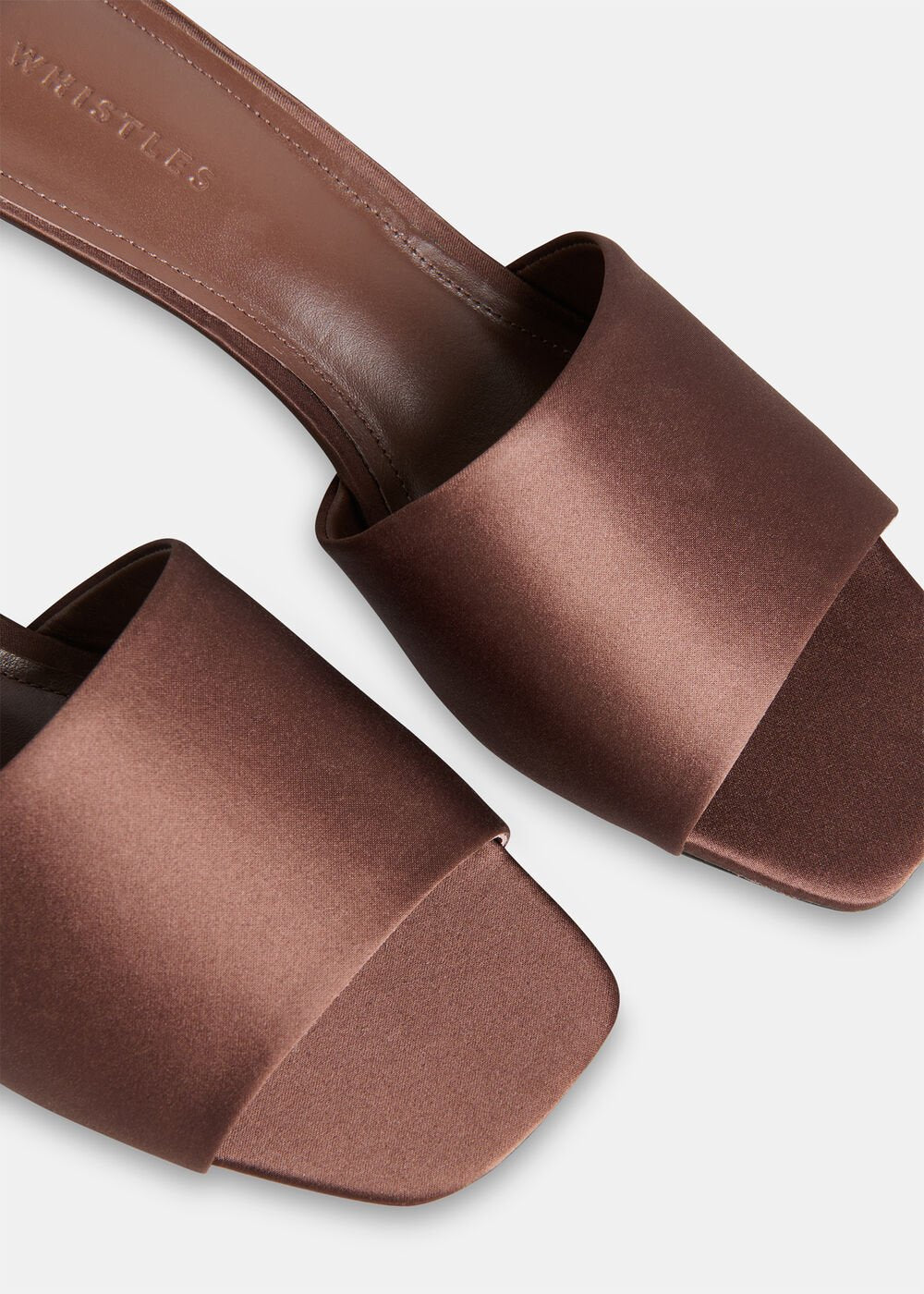 Our Satin Slip-On Heeled Mules capture the essence of spring-summer style. Theyre crafted in a timeless brown hue from a satin fabric, complemented with a chunky toe strap, smooth leather footbed and a chic kitten heel. Theyre perfect for weddings, garden parties and evening dinners, bringing a touch of relaxed sophistication to your looks.