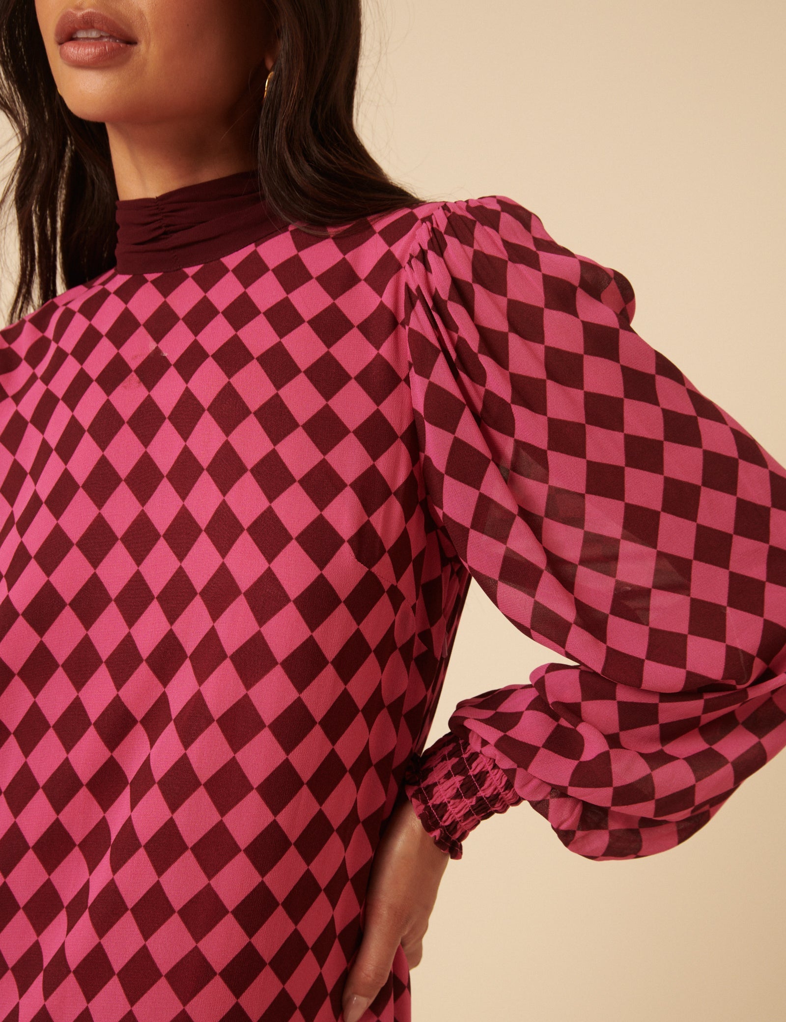 Burgundy and Pink Printed Scarf Tiered Maxi Dress