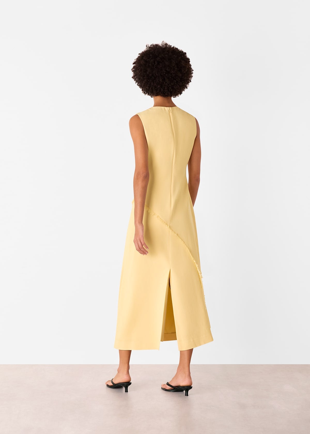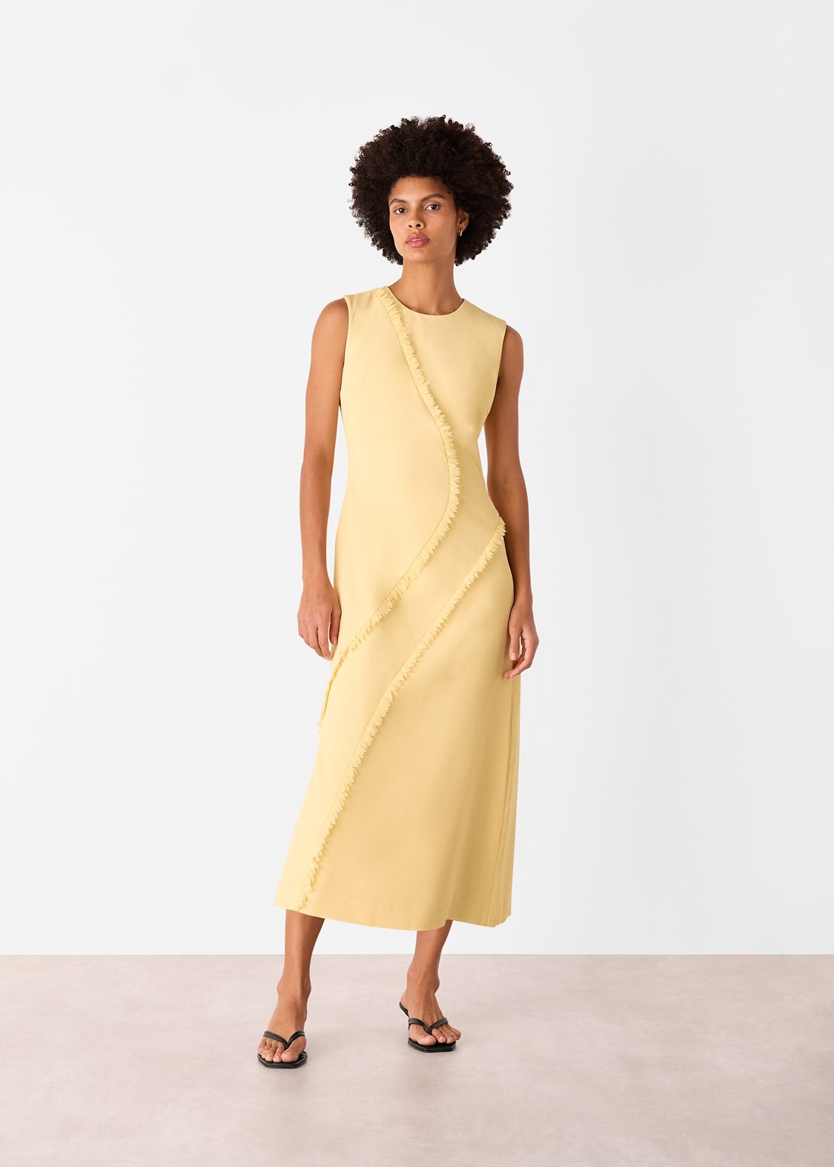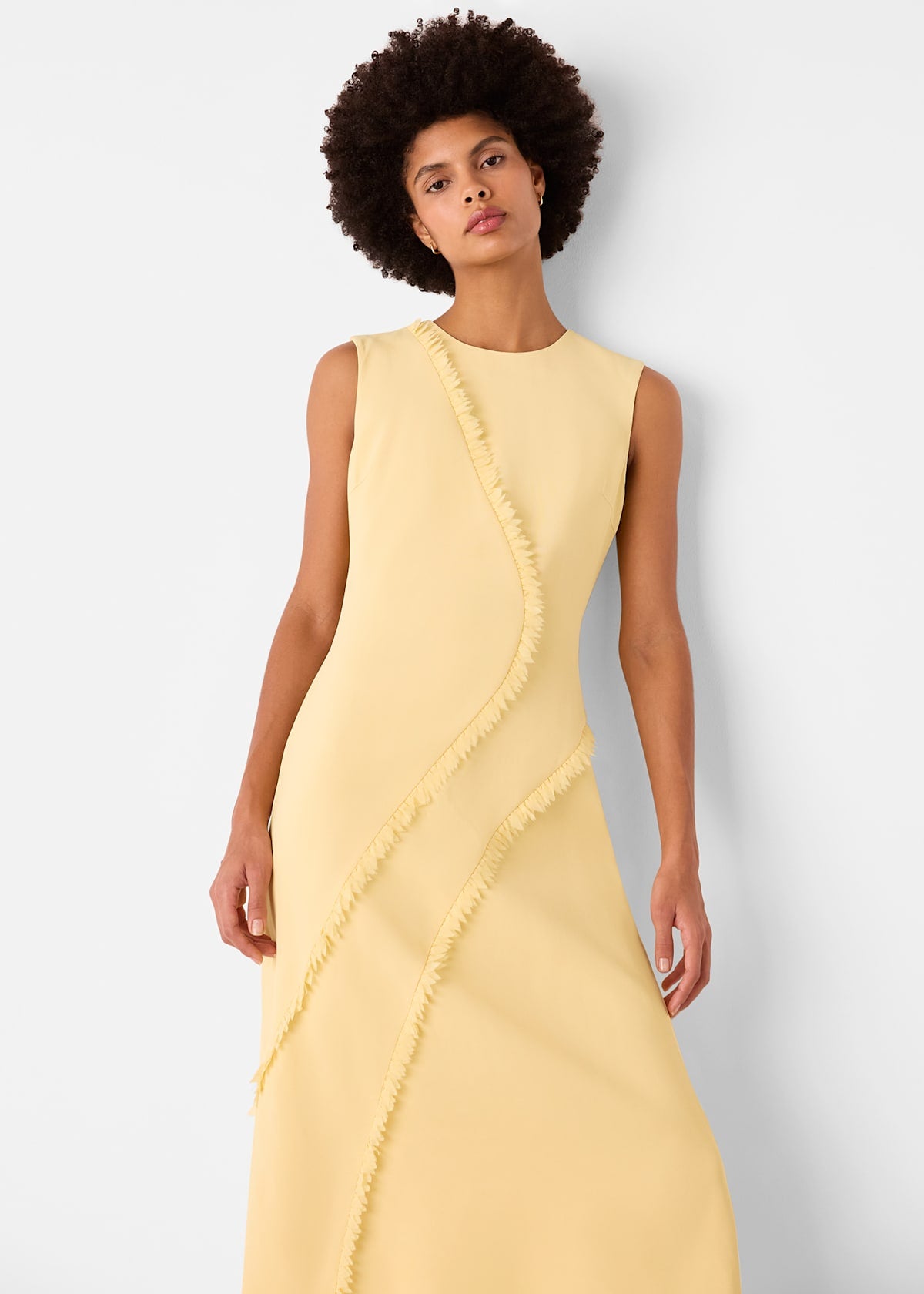 Our Deana Textured Detail Dress is an elegant choice for every occasion, designed in this seasons signature hue butter yellow. The sleeveless, straight-cut silhouette is enhanced with two trim details that contour the body to give a contemporary, sophisticated look whether you're attending a wedding, heading out to dinner or celebrating something in between.