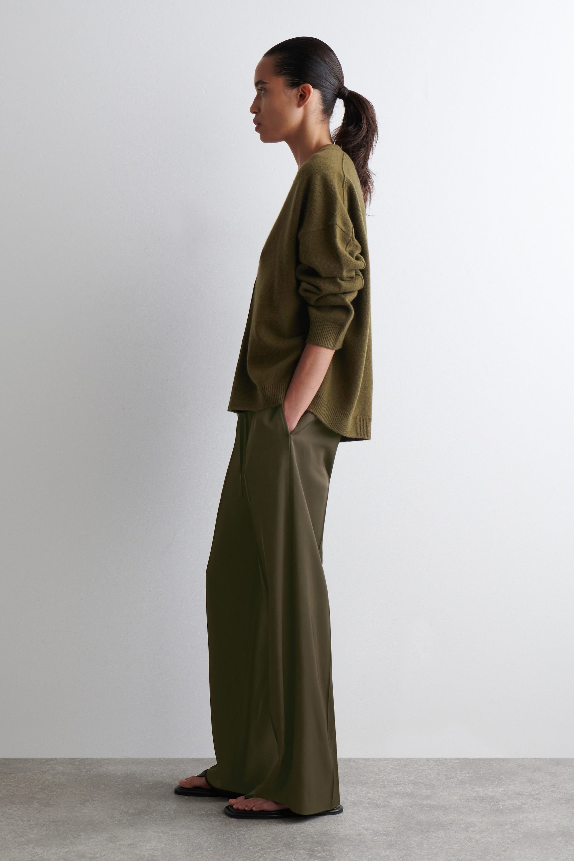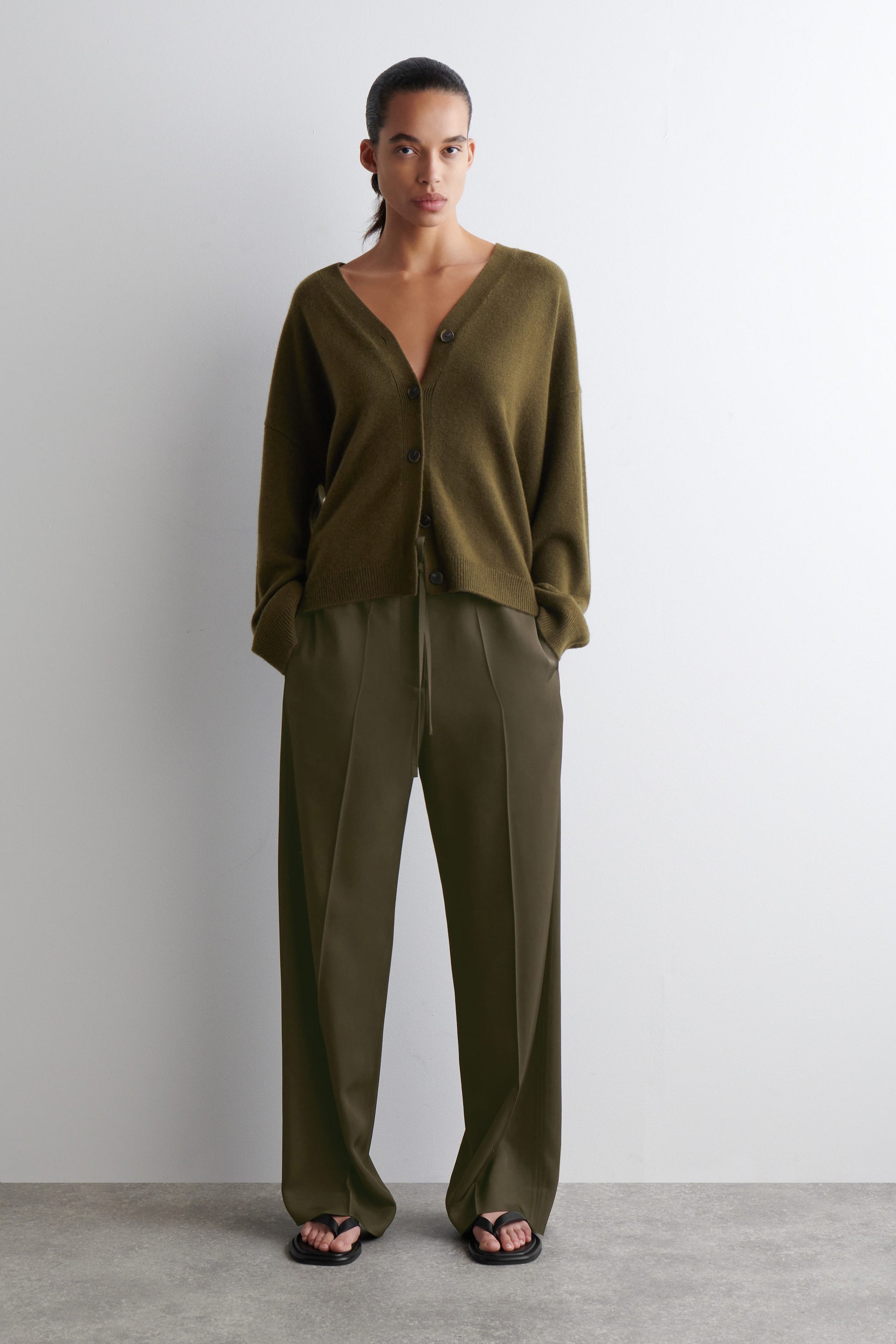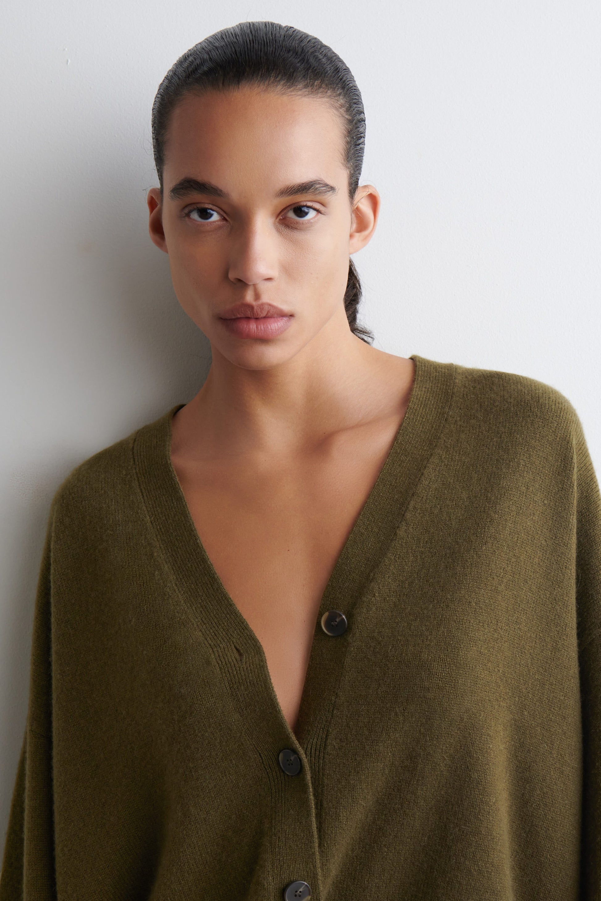 Luxuriously soft cashmere is a key tenet of the COS wardrobe. Rendered in a khaki-brown tone, this cardigan is crafted from premium Good Cashmere Standard® yarn and designed with a V-neckline, dropped shoulders and chunky ribbed trims.