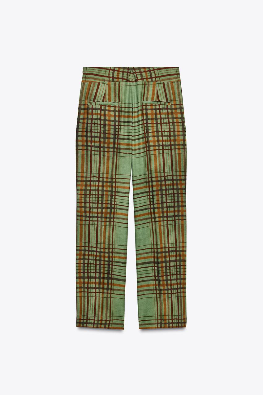Mid-waist trousers made from a viscose yarn. Pockets on the front. Flared hem. Front zip and button fastening.