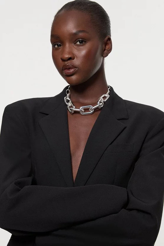 Make a striking impression with this Karen Millen Chunky Chain Statement Necklace. The substantial links create a bold silhouette that transforms even the simplest ensemble into something extraordinary. Perfect for formal occasions where you wish to command attention, this necklace adds sophistication to wedding guest attire or race day ensembles. For evening events, style with an elegant updo and statement earrings for a coordinated look. The versatile design transitions seamlessly from daytime corporate functions to evening celebrations, making it an indispensable addition to your jewellery collection.