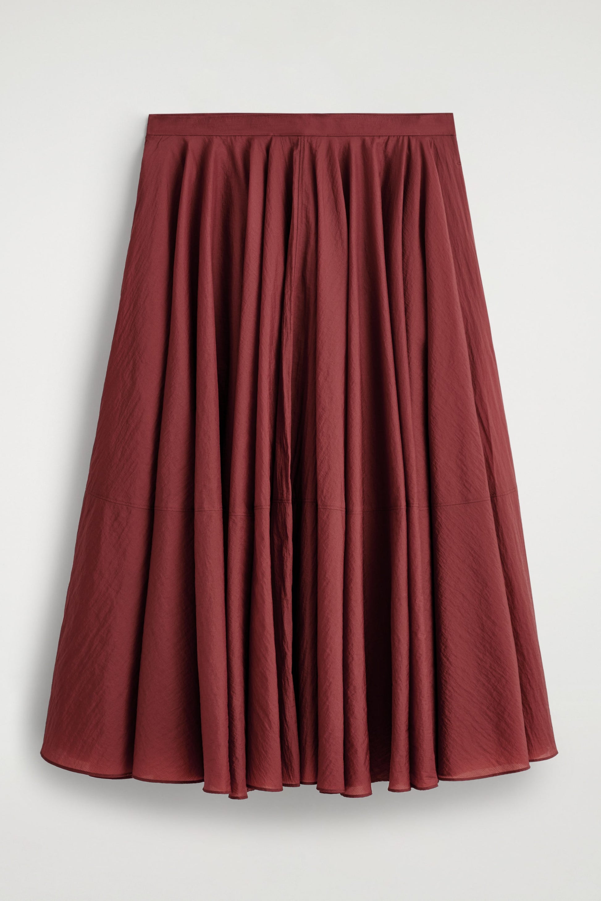 Channelling a modern femininity, this midi skirt is circle-cut for a voluminous silhouette and offered in a saturated red tone. It's designed with gathering that creates a flouncy shape and finished with subtle pockets at either side. Style it with mules and a tank.