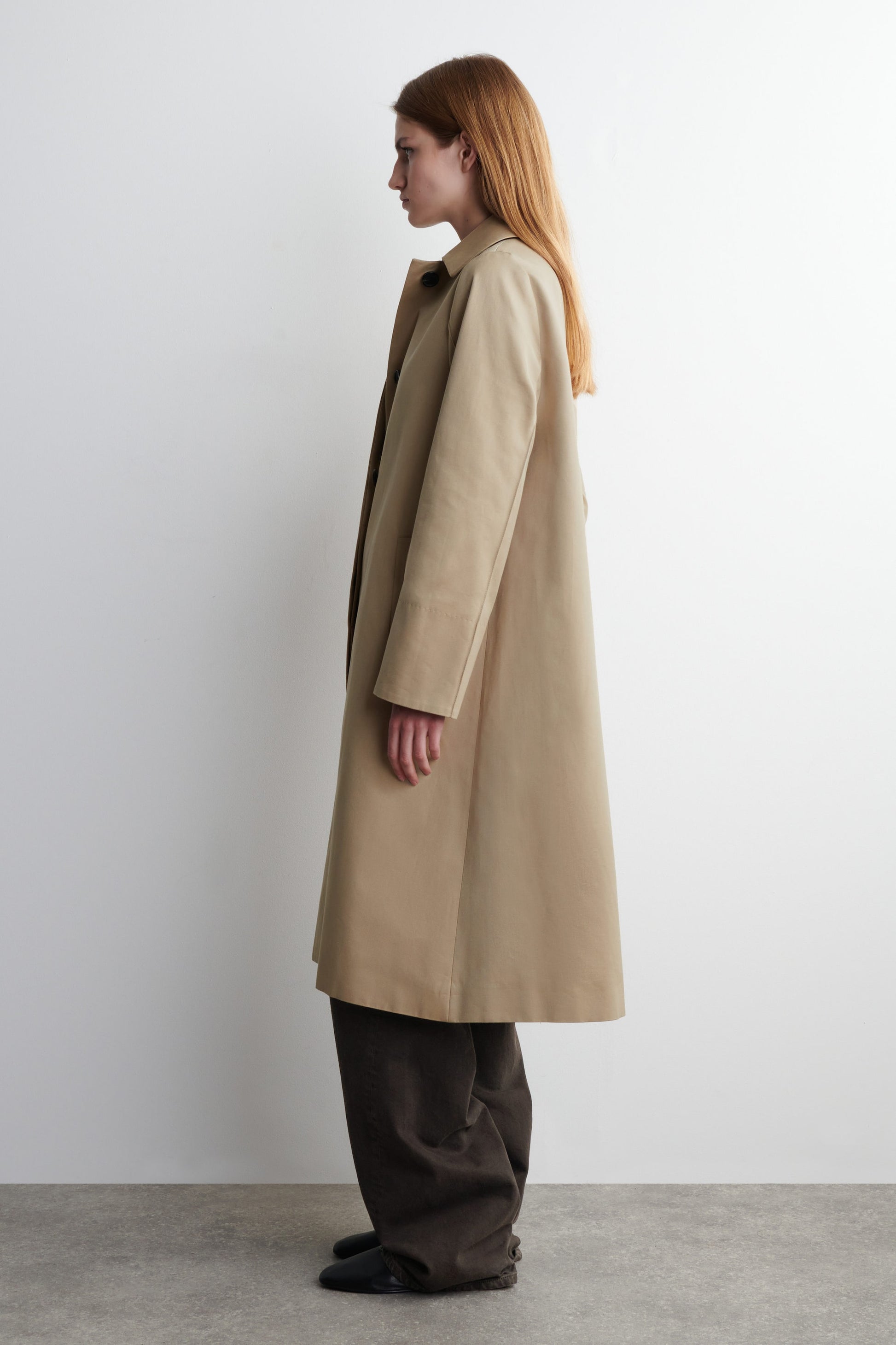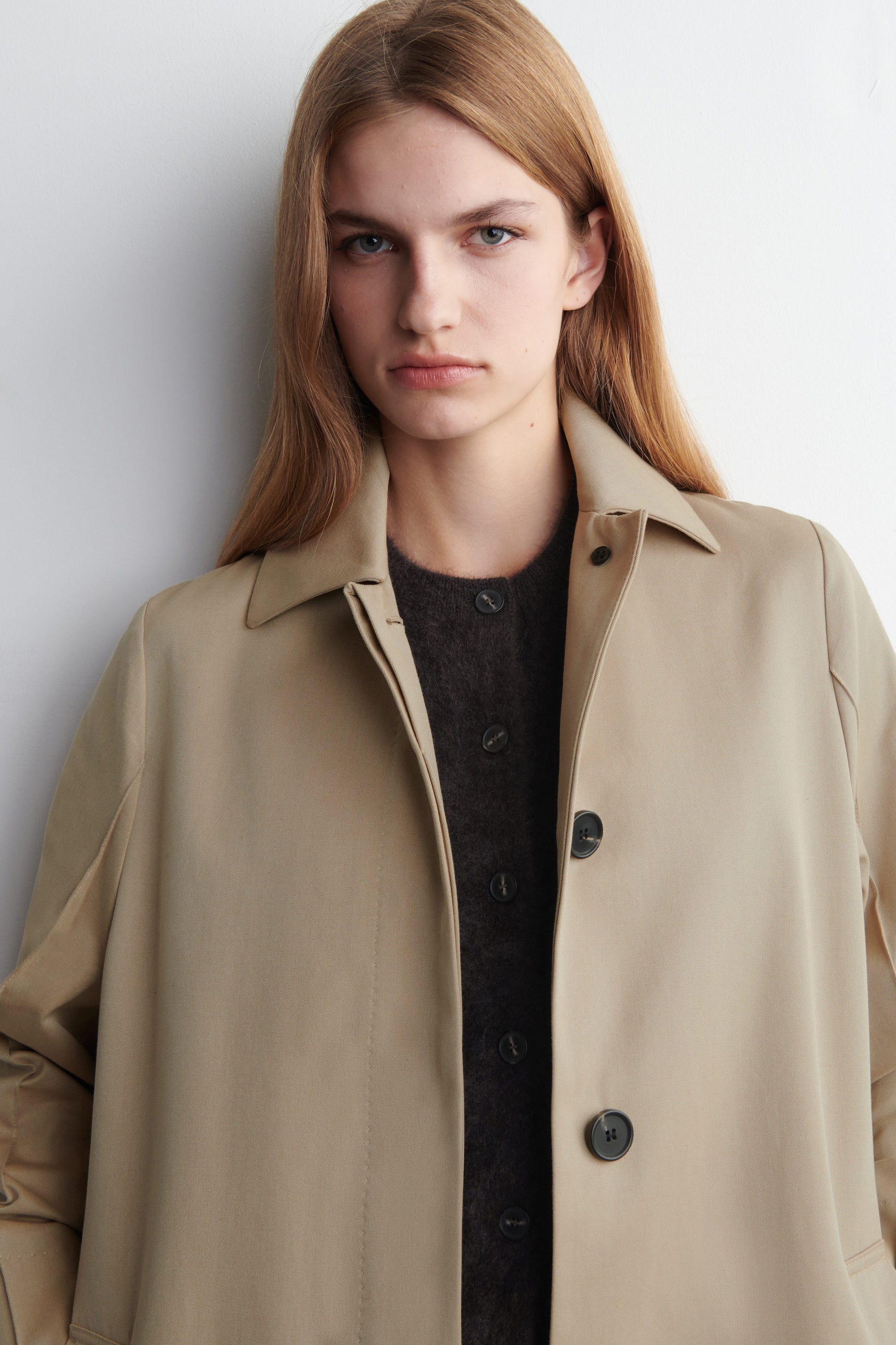 Timeless silhouettes lend themselves to effortless transitional styling. Made from crisp cotton, this refined car coat is cut in a clean, classic shape and features a pointed collar, full lining and a concealed placket for a considered finish.