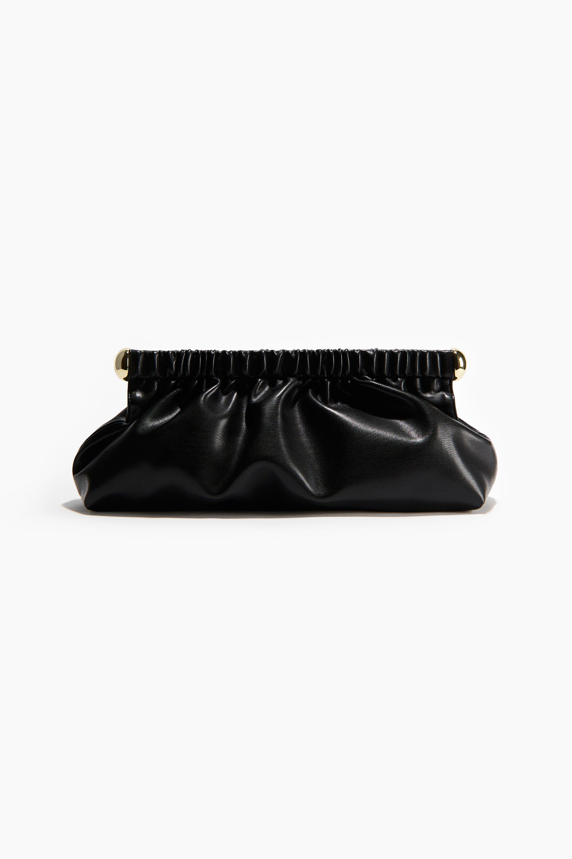 Clutch in coated fabric with a squeeze-top closure. Lined.