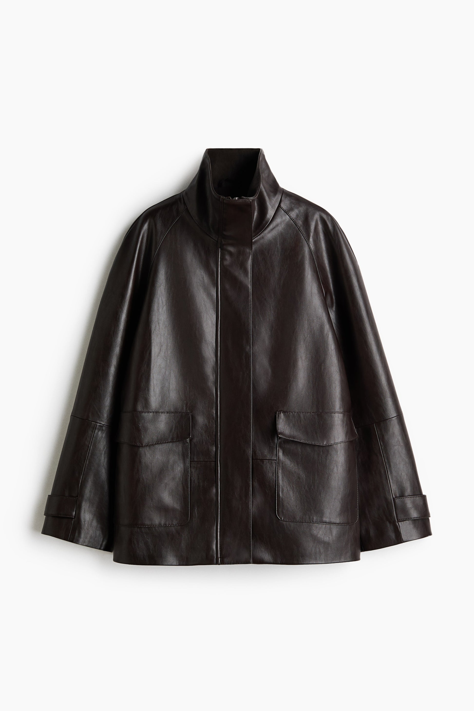 Jacket in coated fabric with a funnel collar, zip down the front and a wind flap with concealed press-studs. Patch front pockets with a flap and raglan sleeves with a button tab at the cuffs. Lined.