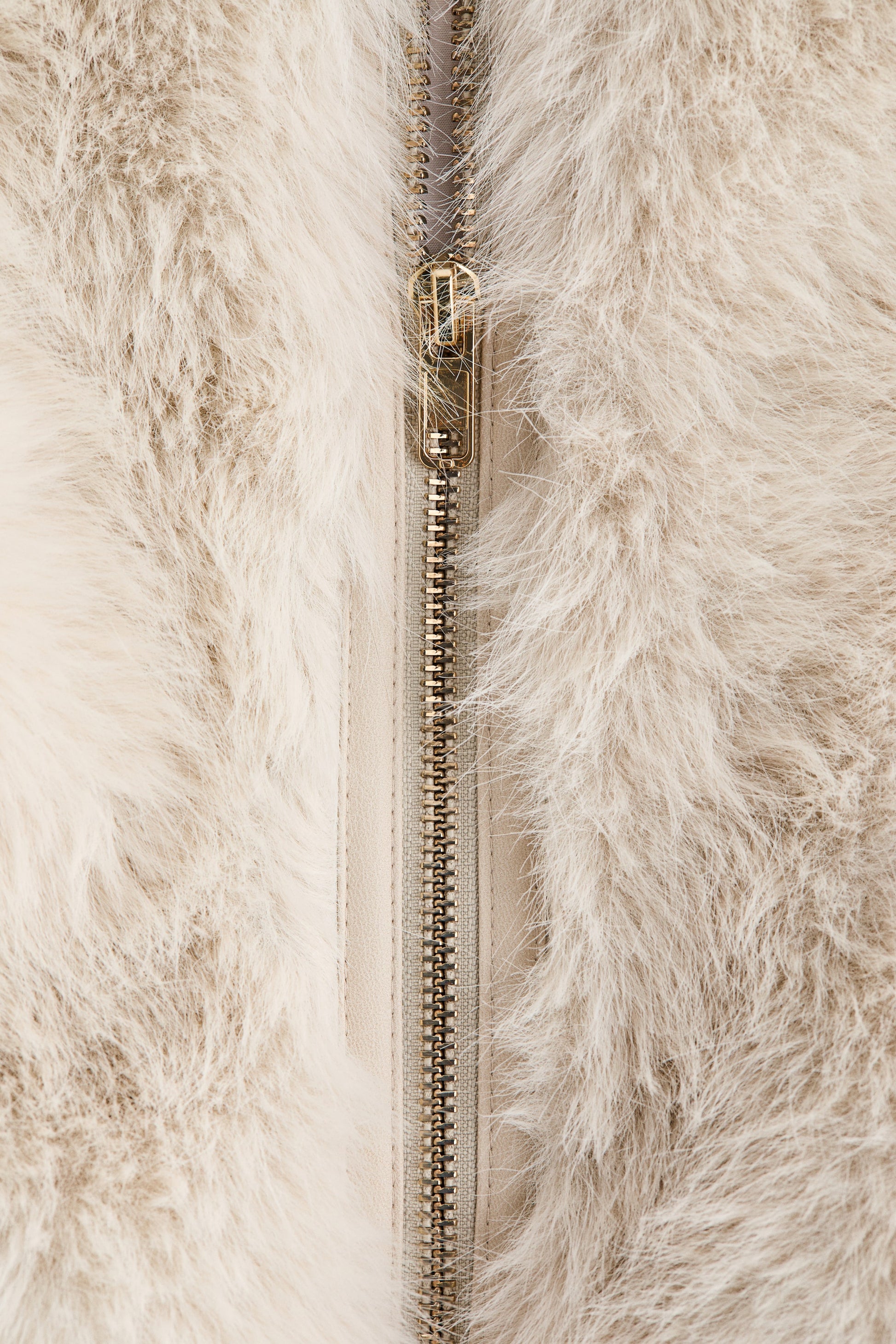 Jacket in soft, fluffy fabric with a large collar, zip down the front and discreet side pockets. Lined.