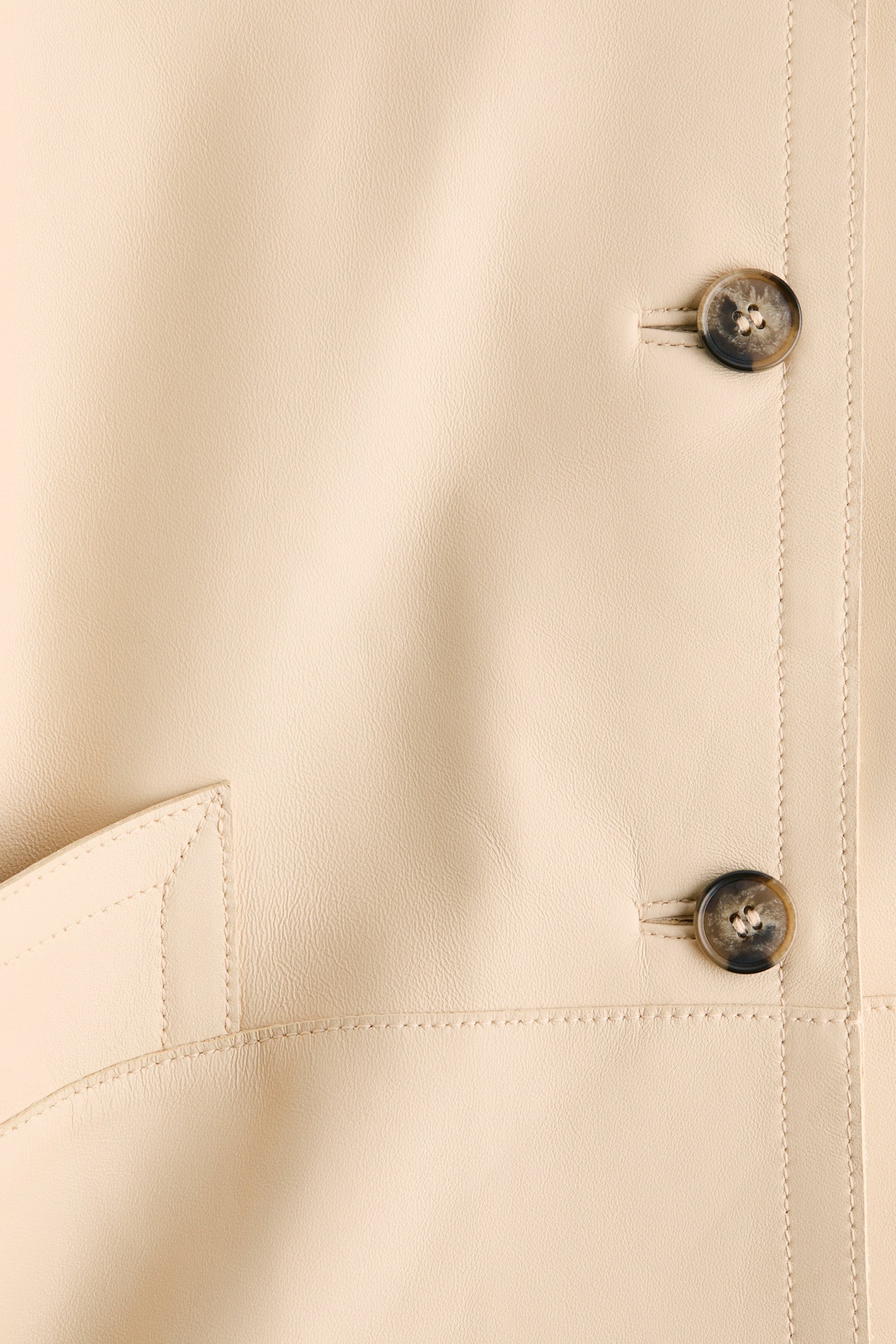 Jacket in soft leather with a collar and buttons down the front. Welt front pockets and a slit and button at the cuffs. Twill lining.
