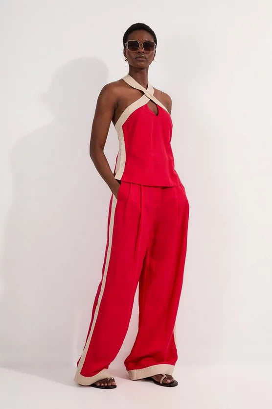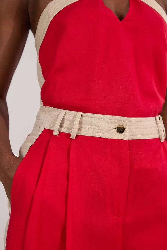 Main 55% Linen, 45% ViscoseRayon. Machine wash at 30. Model wears UK Size 8 US Size 4. Models height approx 5"9. Length approx 108cm.