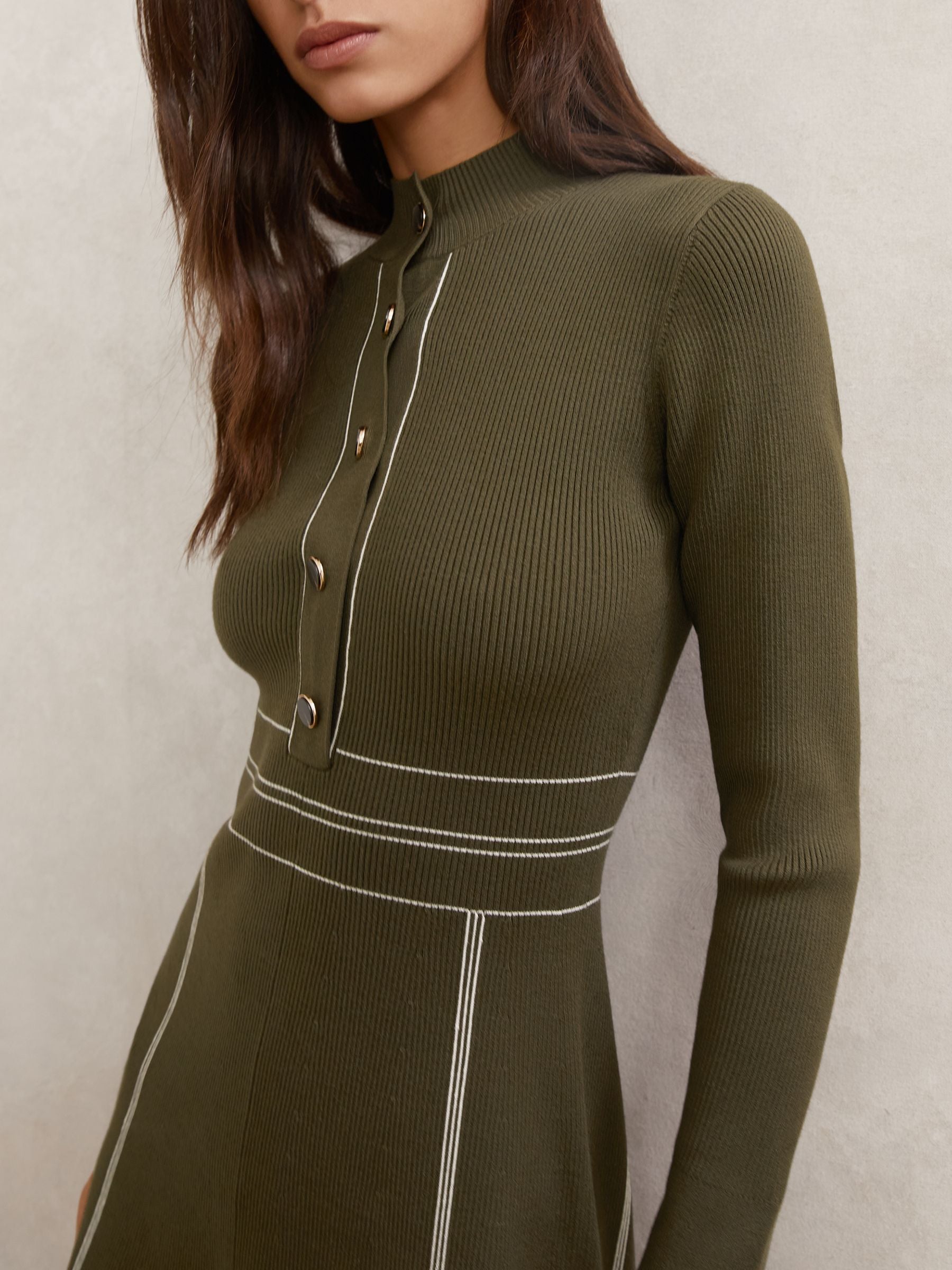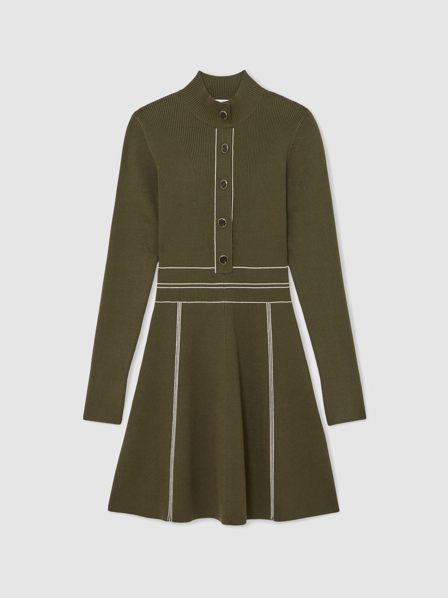 Contrast-Stitch Knitted Mini Dress in Khaki Green