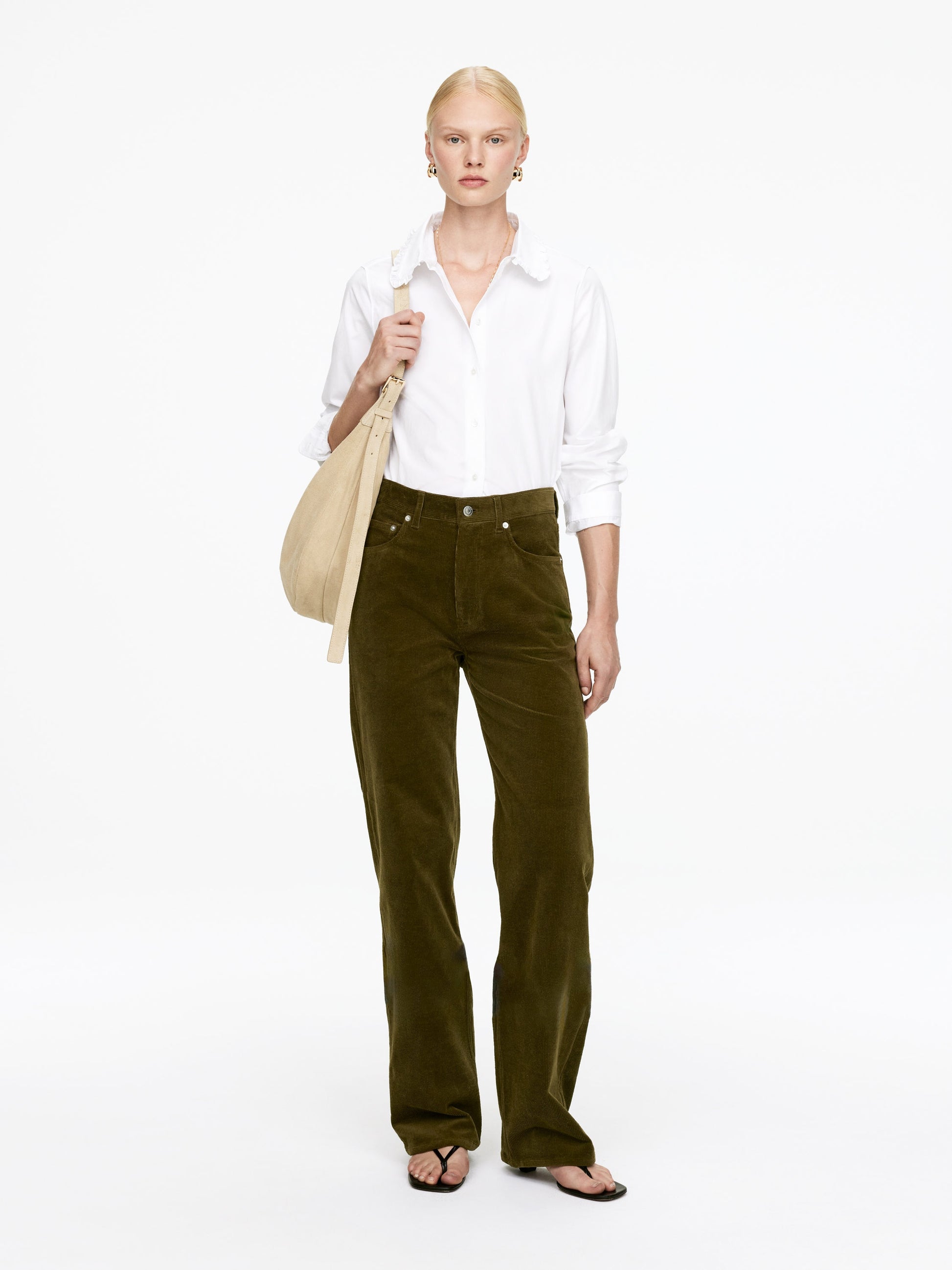 CORAL in is cut from non-stretch corduroy and features a high-rise waist, relaxed fit and wide legs.