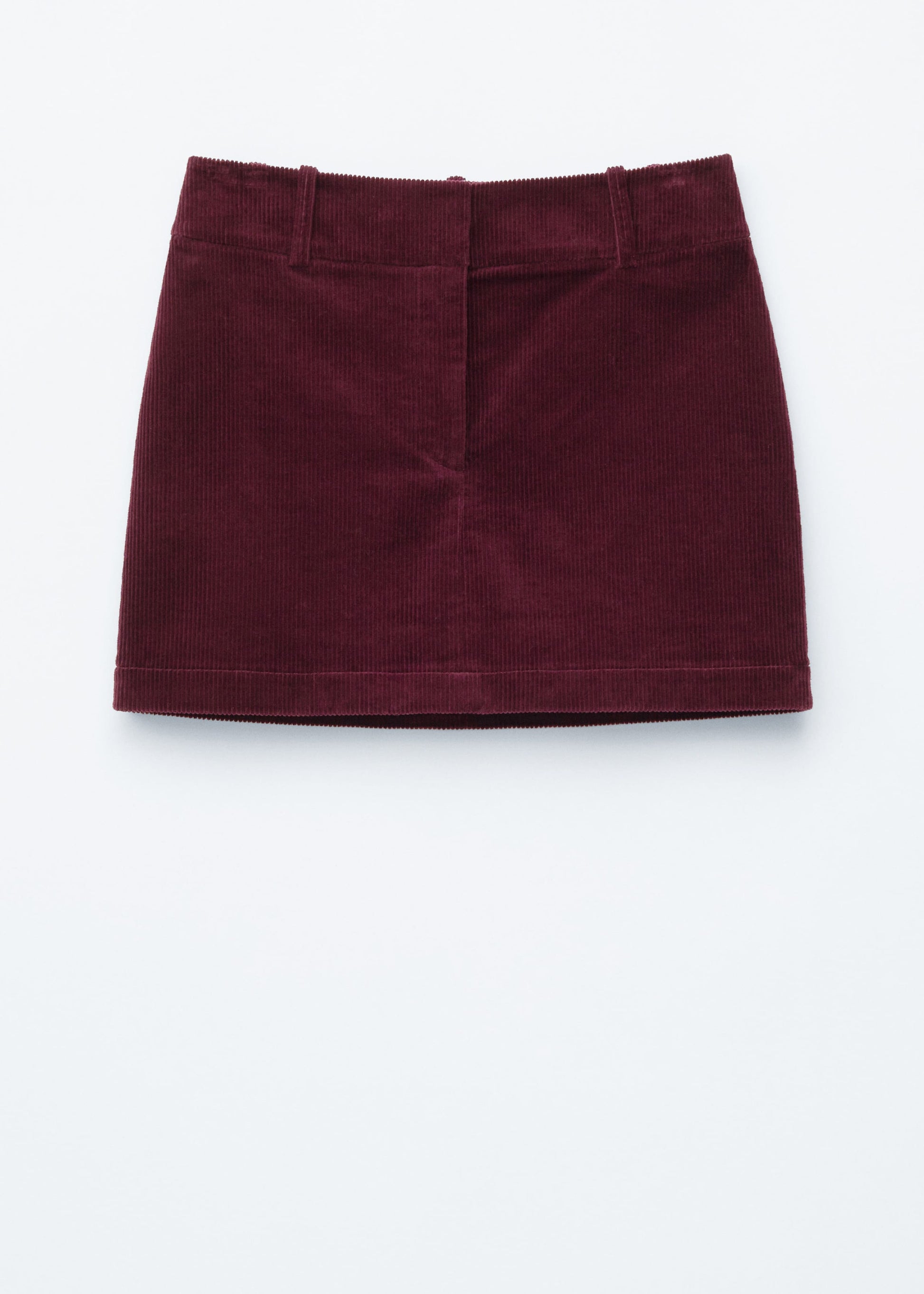 This mini skirt is crafted from a textured corduroy fabric. Cut in a straight silhouette, it features a regular waist with belt loops and a zip fly with hook-and-bar closure.