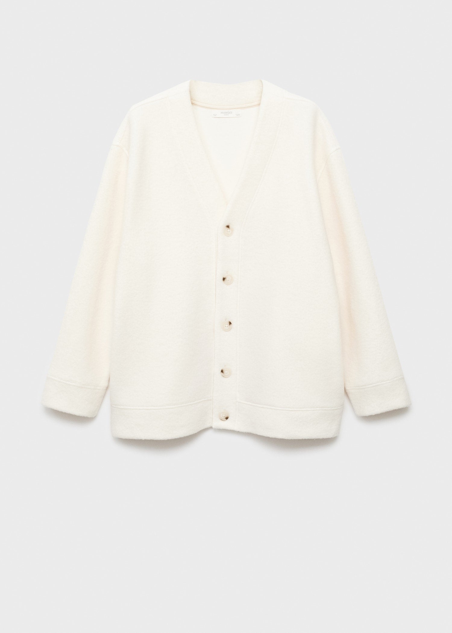 Cotton and wool mix. V-neck. Straight Design. Button up. Soft touch.
