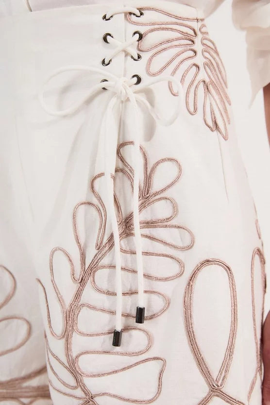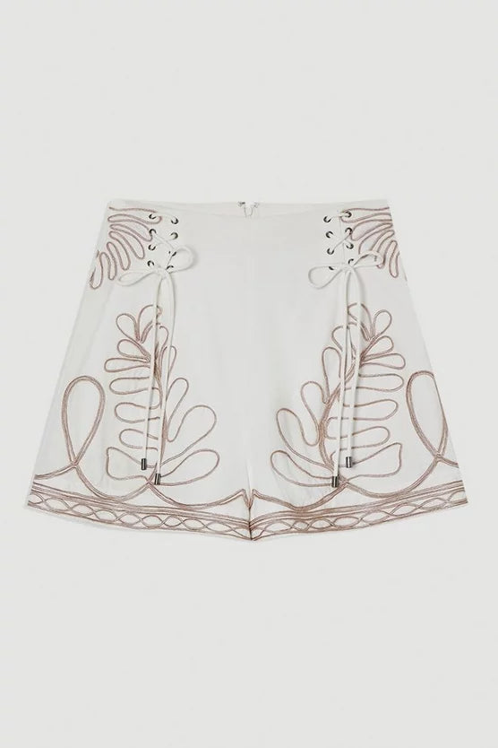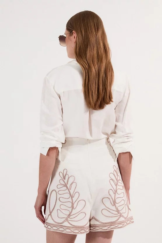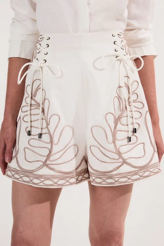 Cotton Linen Cornelli Embroidered Woven High Waisted Short