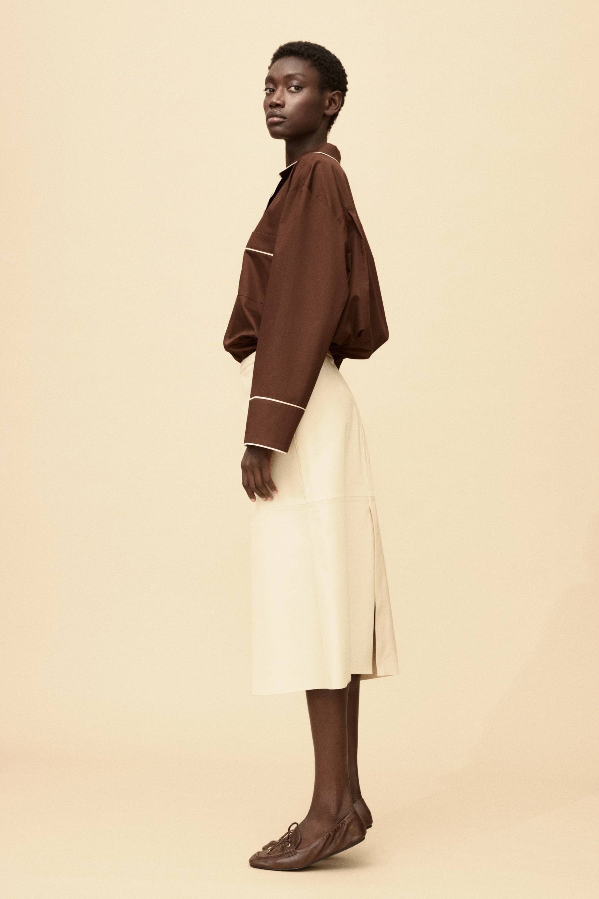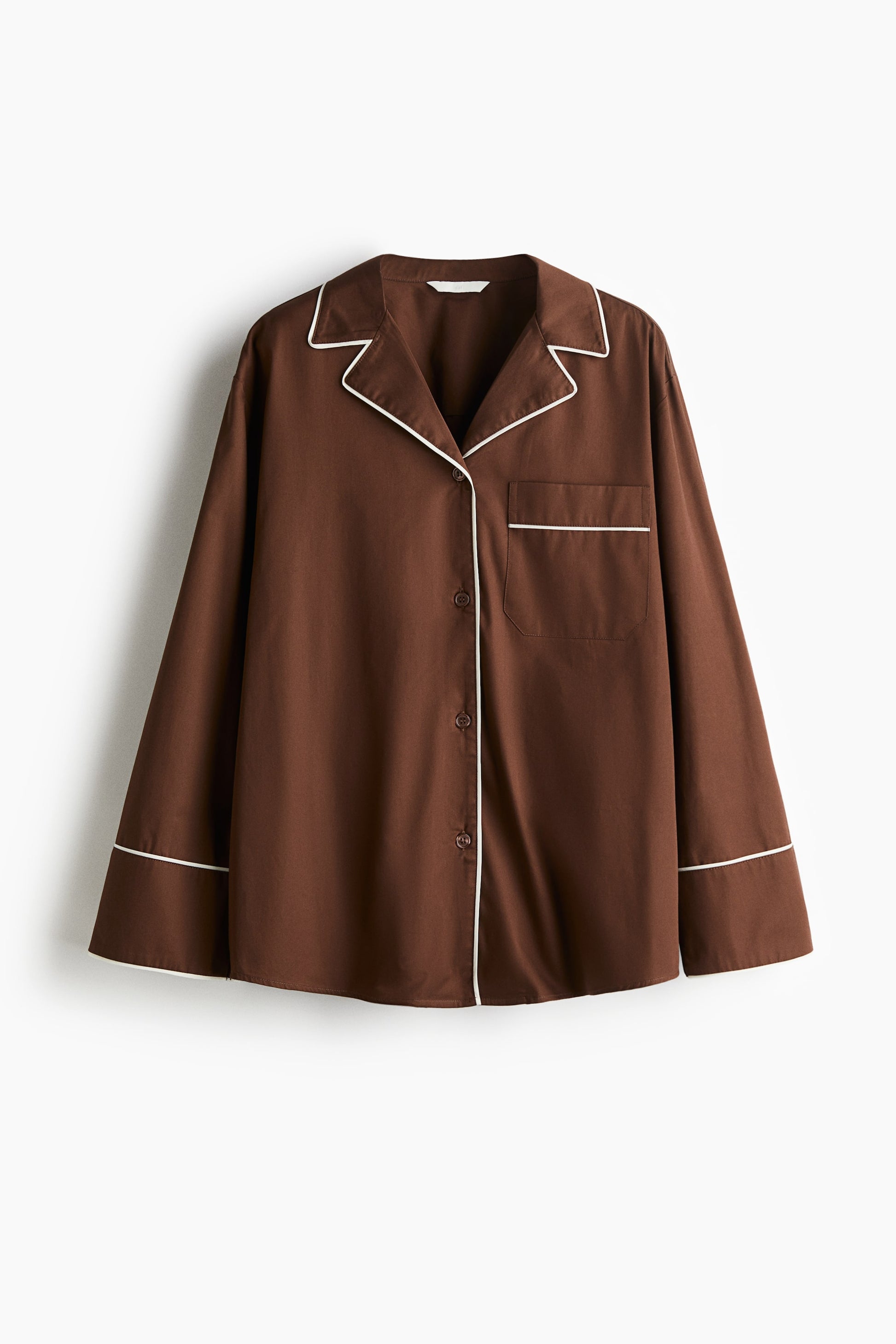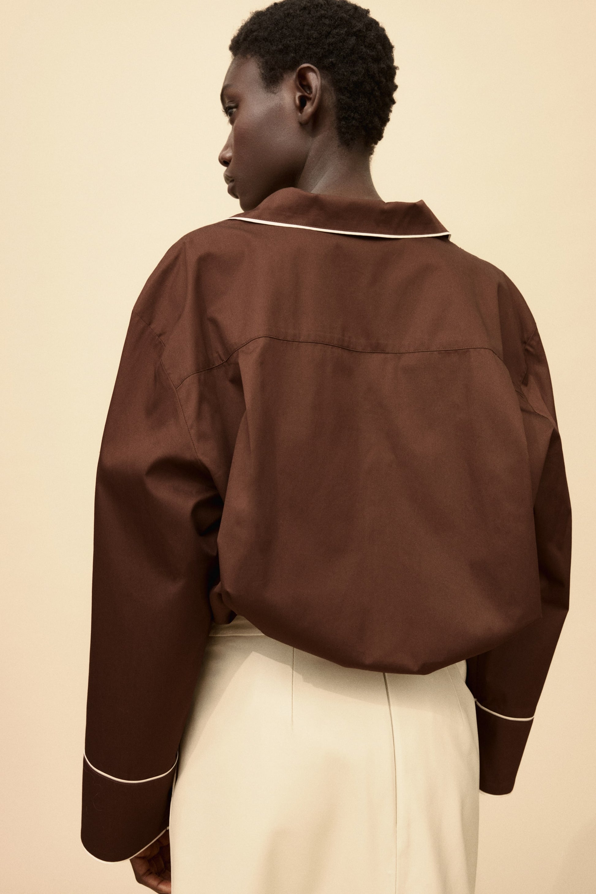 Oversized shirt in a cotton weave with accent-colour piping. Resort collar, buttons down the front and a patch chest pocket. Yoke at the back and long sleeves with wide cuffs.