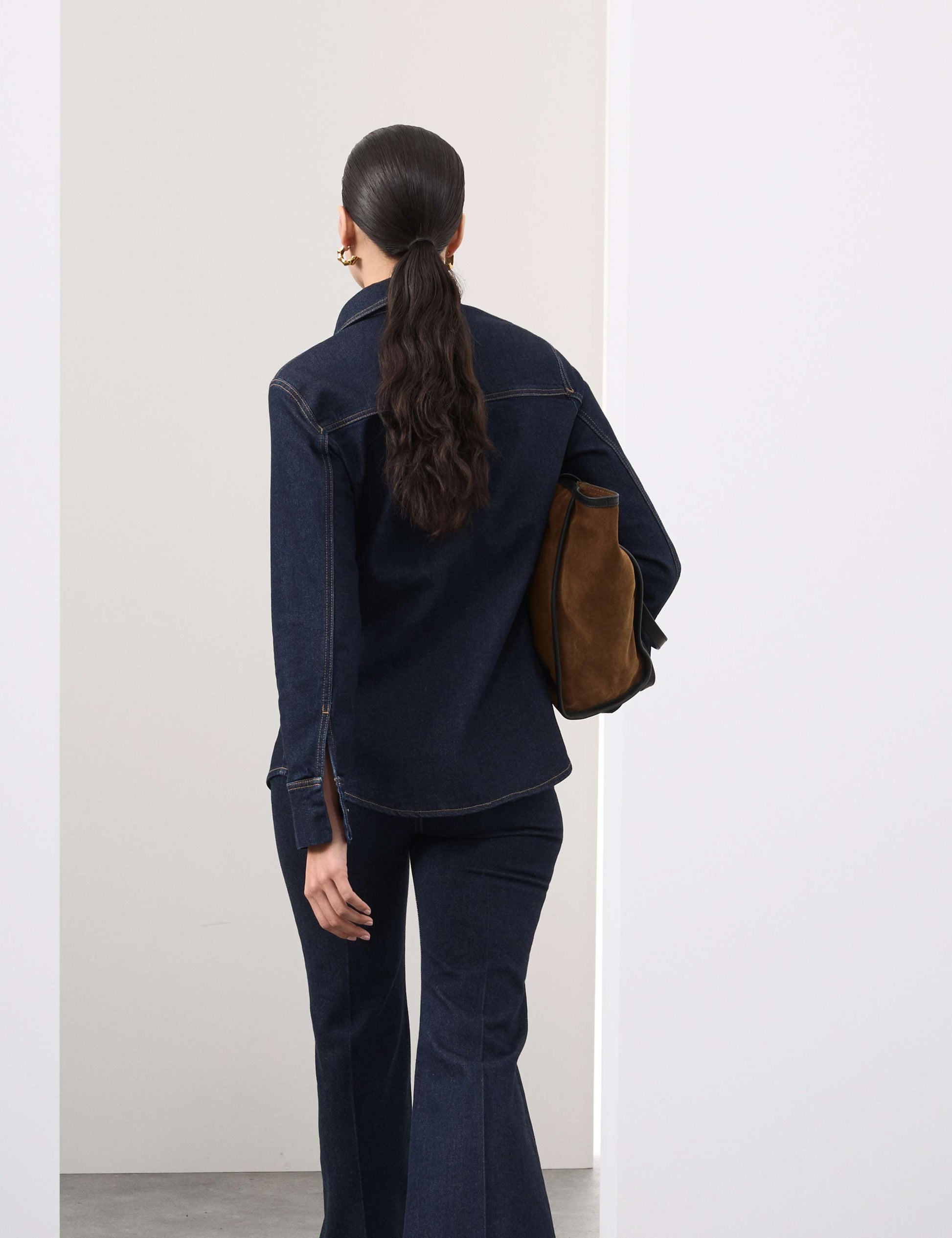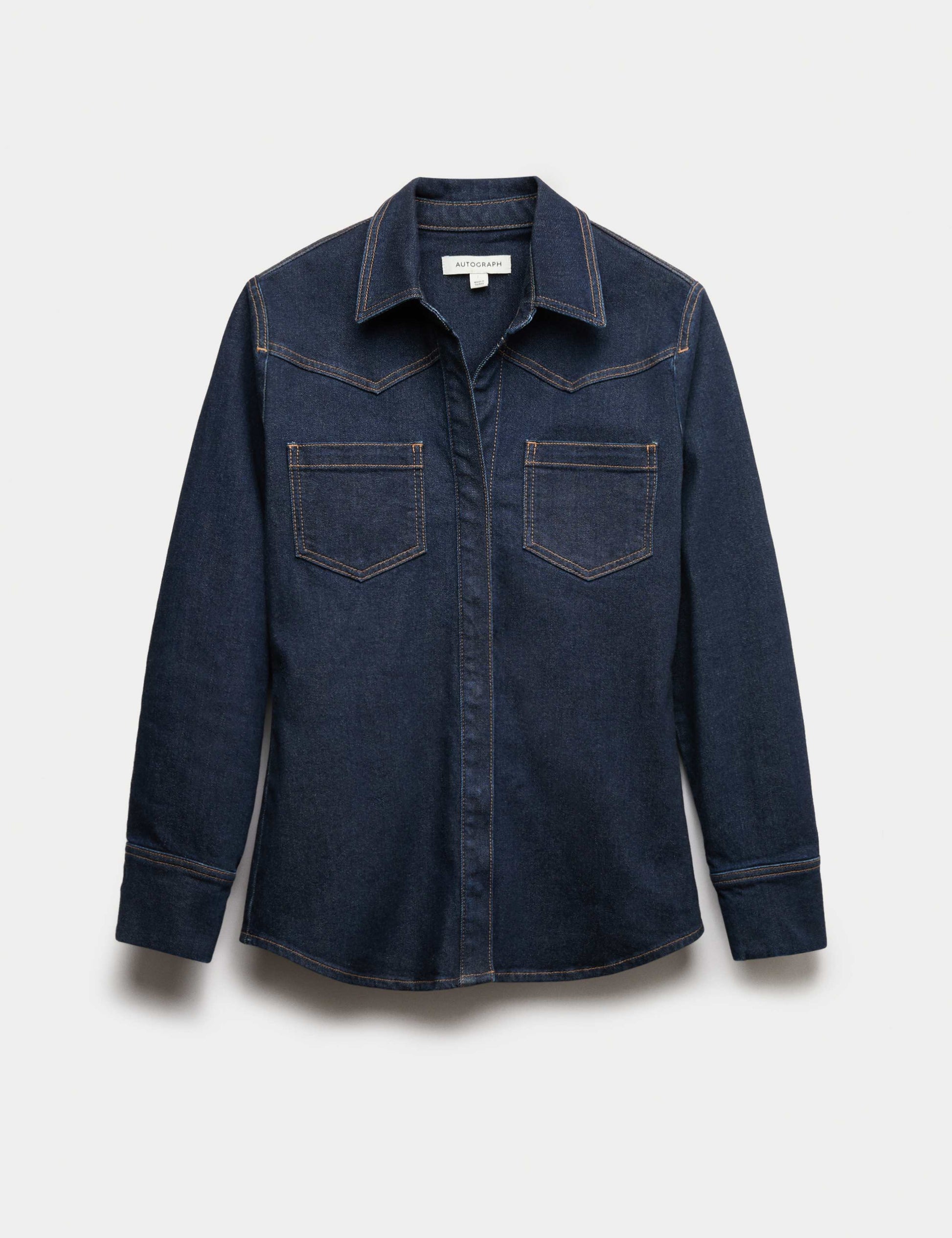 Achieve a timeless look with this denim shirt from our Autograph collection. It's cut to a flattering fitted shape, with a neat collared neckline and two patch pockets. The popper fastenings on the front and cuffs are concealed for a neat-and-tidy finish.