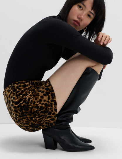 With its bold leopard print, this cotton-rich velvet mini skirt will soon bring drama to your look. It sits high on the waist and has a flattering A-line shape. Added stretch in the fabric ensures its comfortable, too.