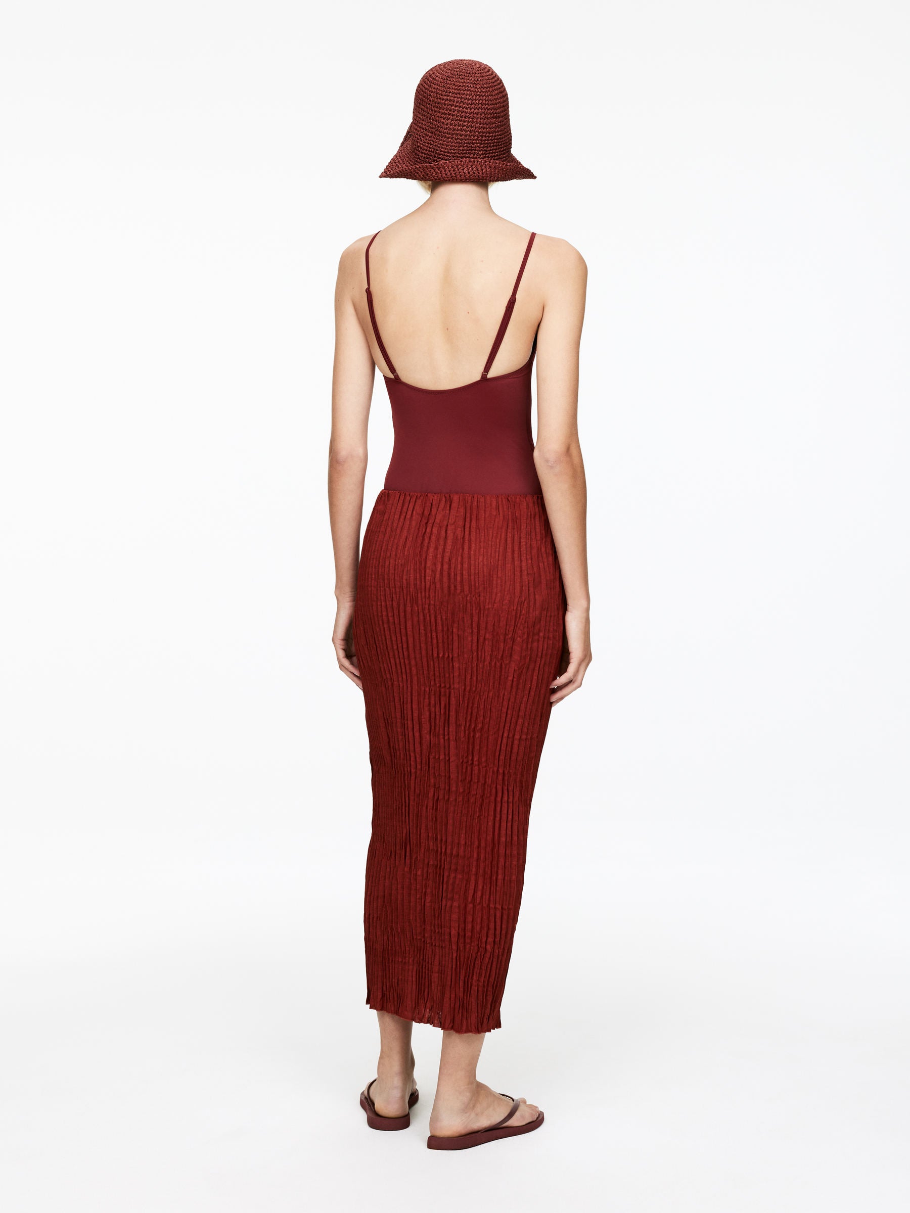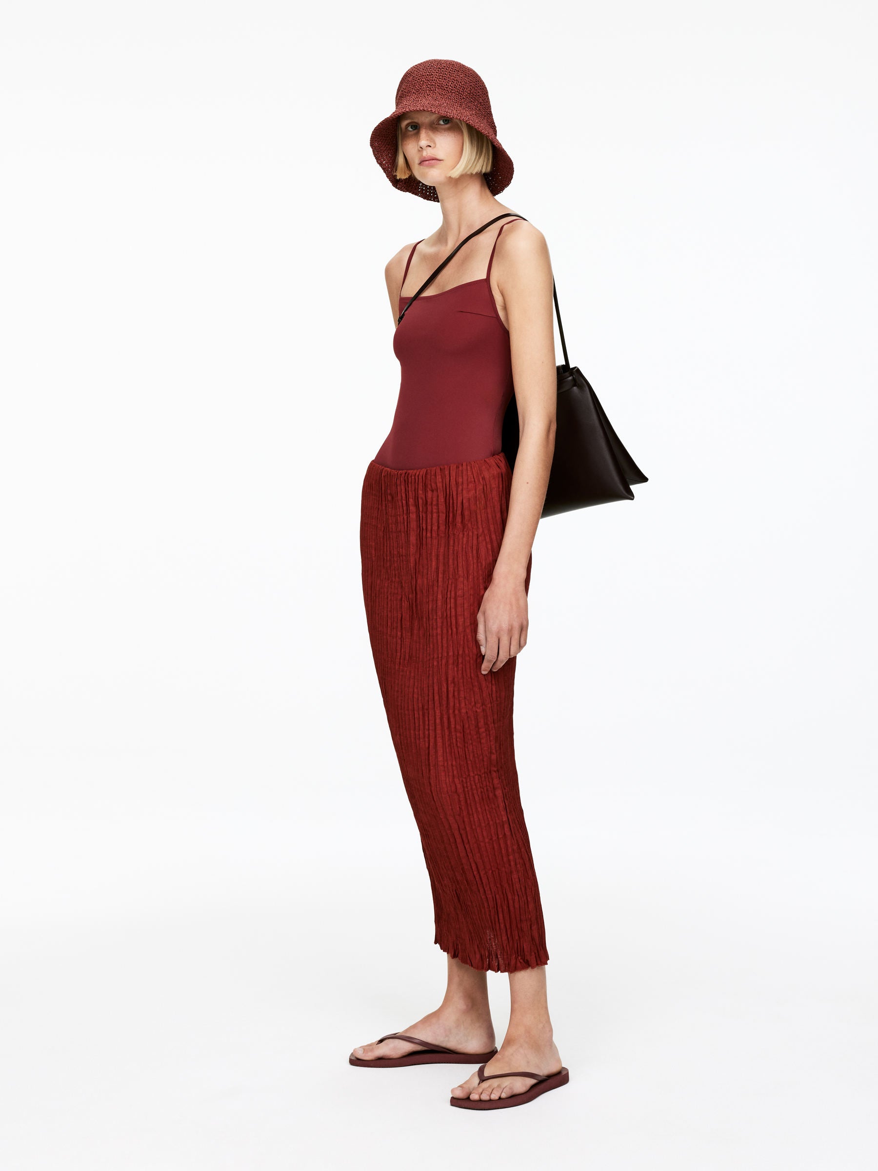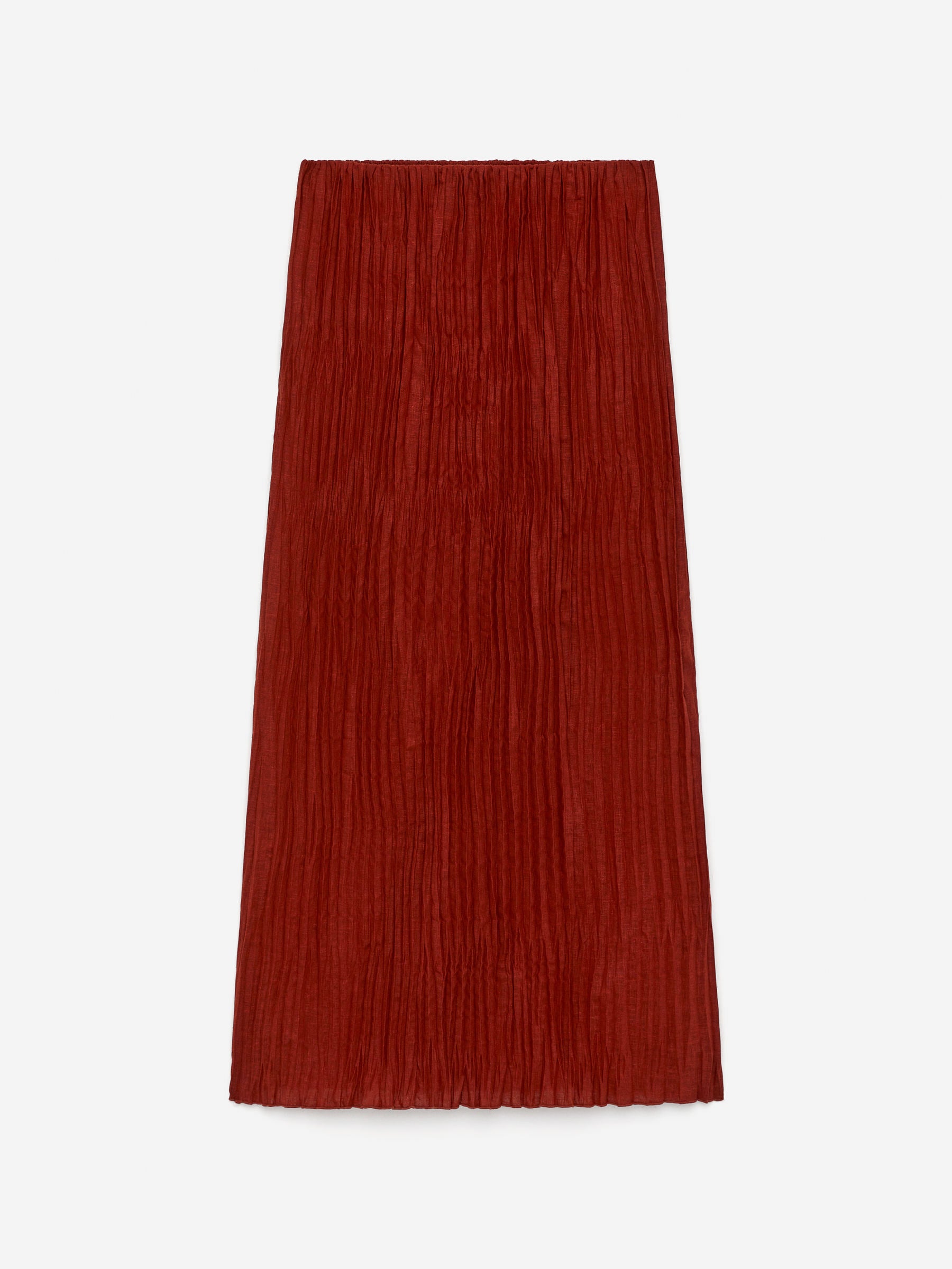 Long skirt with a crinkled texture. Elastic insert at the waist. Regular fit.