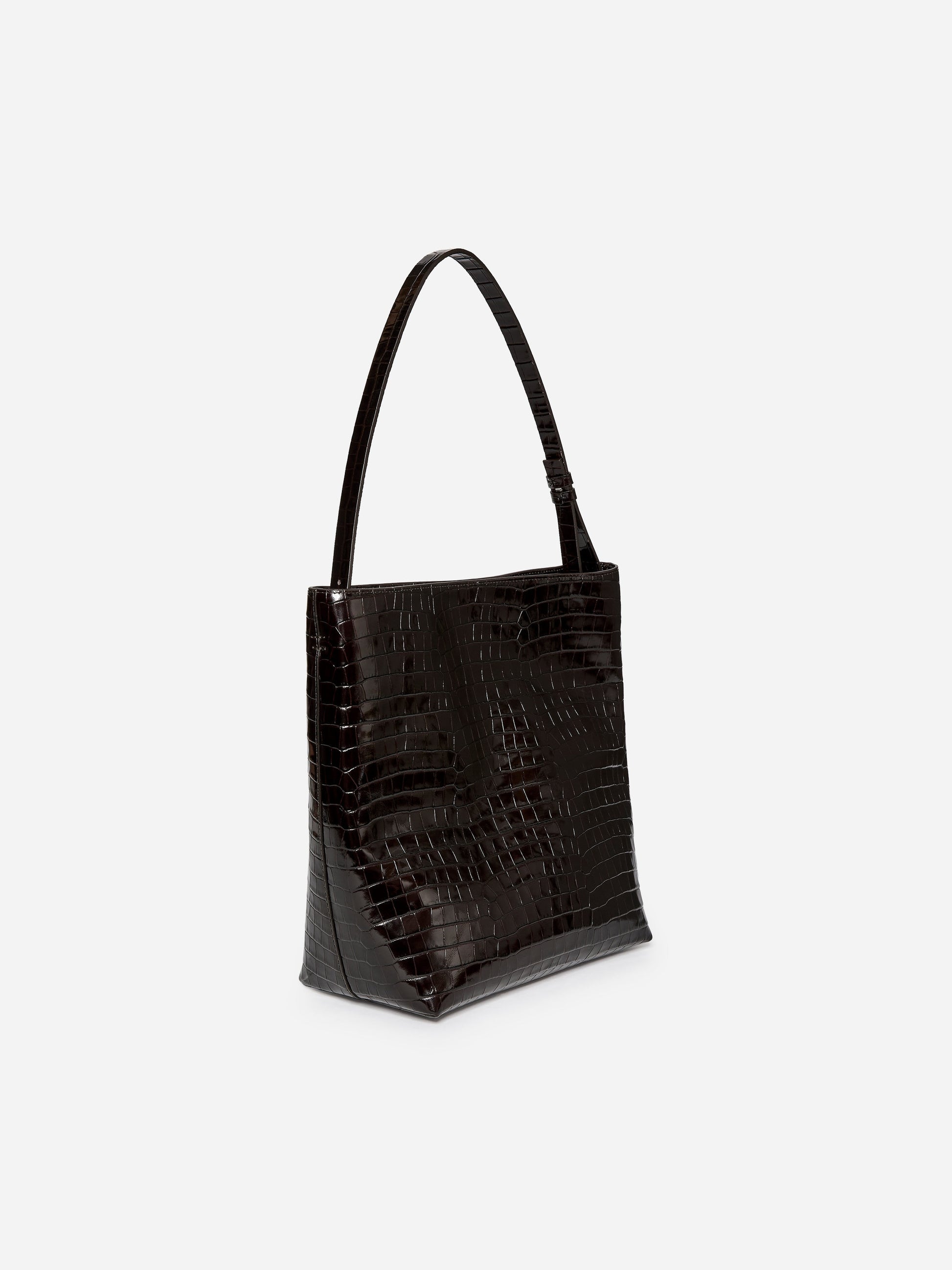 Shoulder bag featuring leather with a croc finish. Designed with a magnetic closure and an internal zip pocket. Width 27 cm, height 33 cm, depth 15 cm.