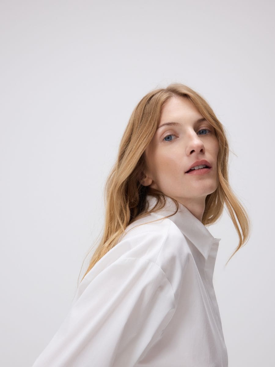 The model is presenting product in size S36. Height of female model 175 cm